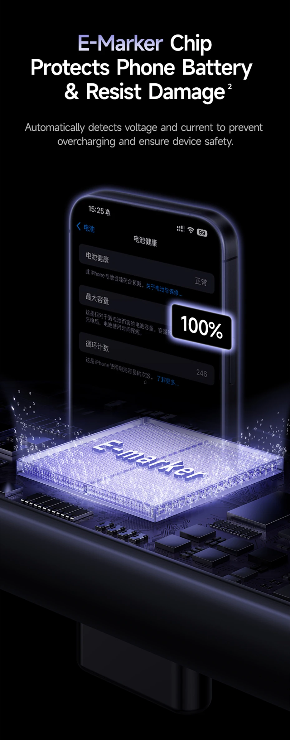 El chip E-Marker protege la batería del teléfono y resiste daños