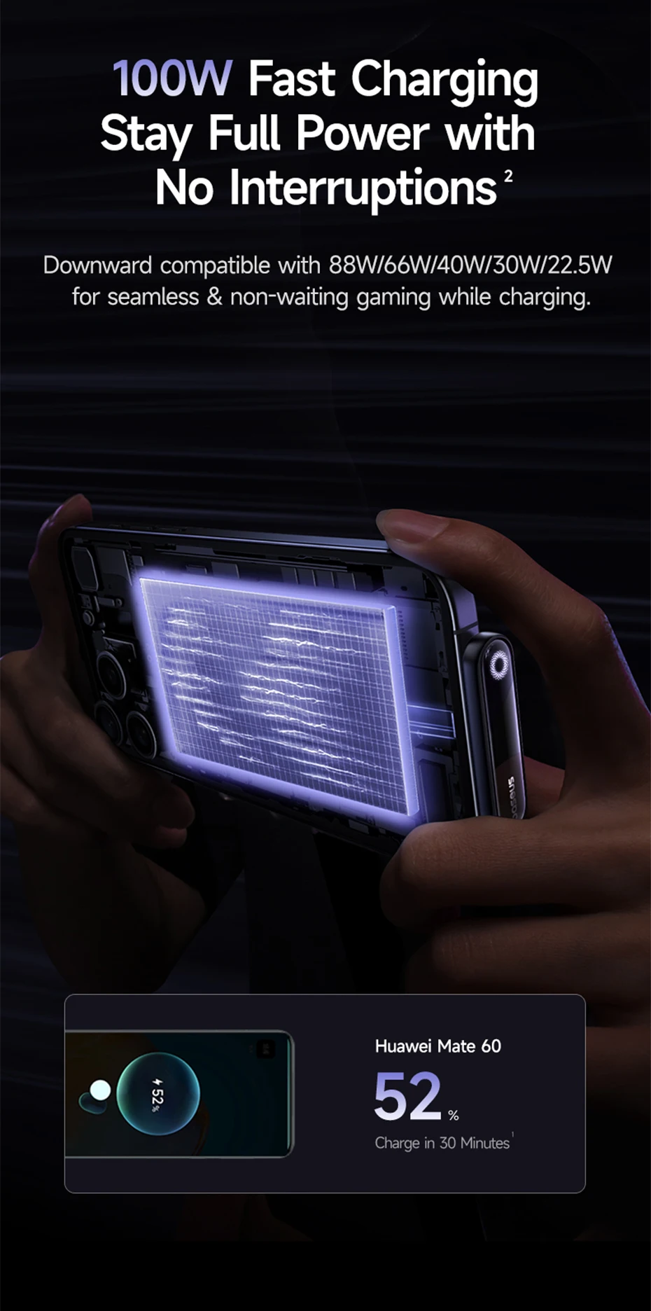 Compatible con versiones anteriores de 88 W/66 W/40 W/30 W/22.5 W para juegos fluidos y sin esperar mientras se carga.