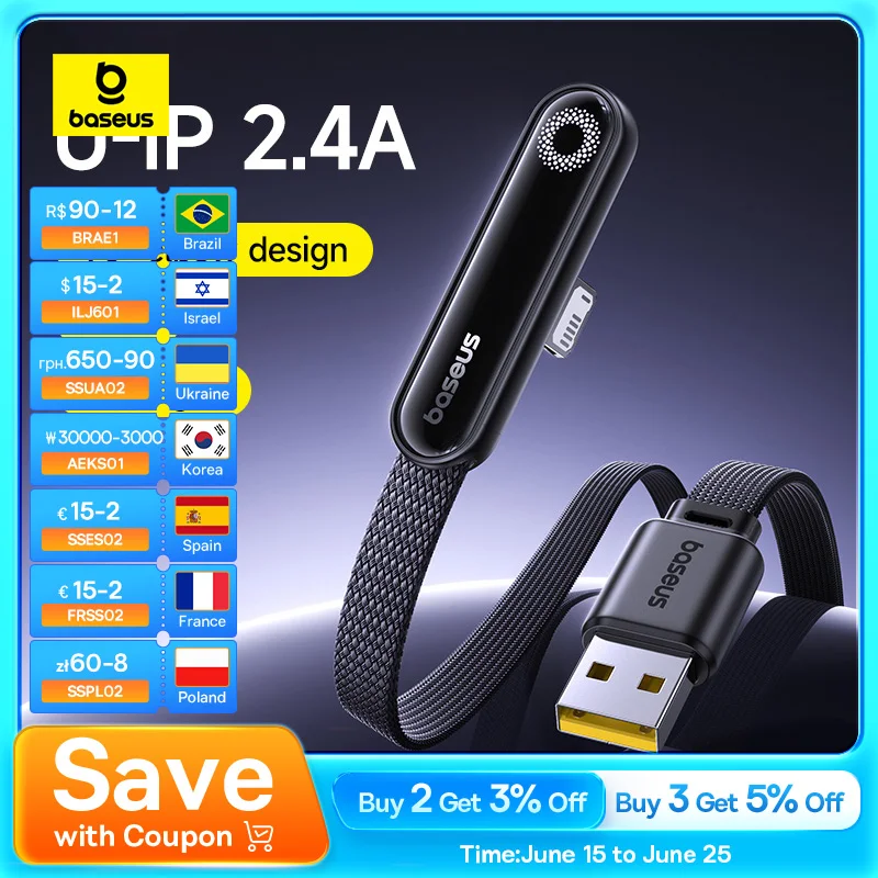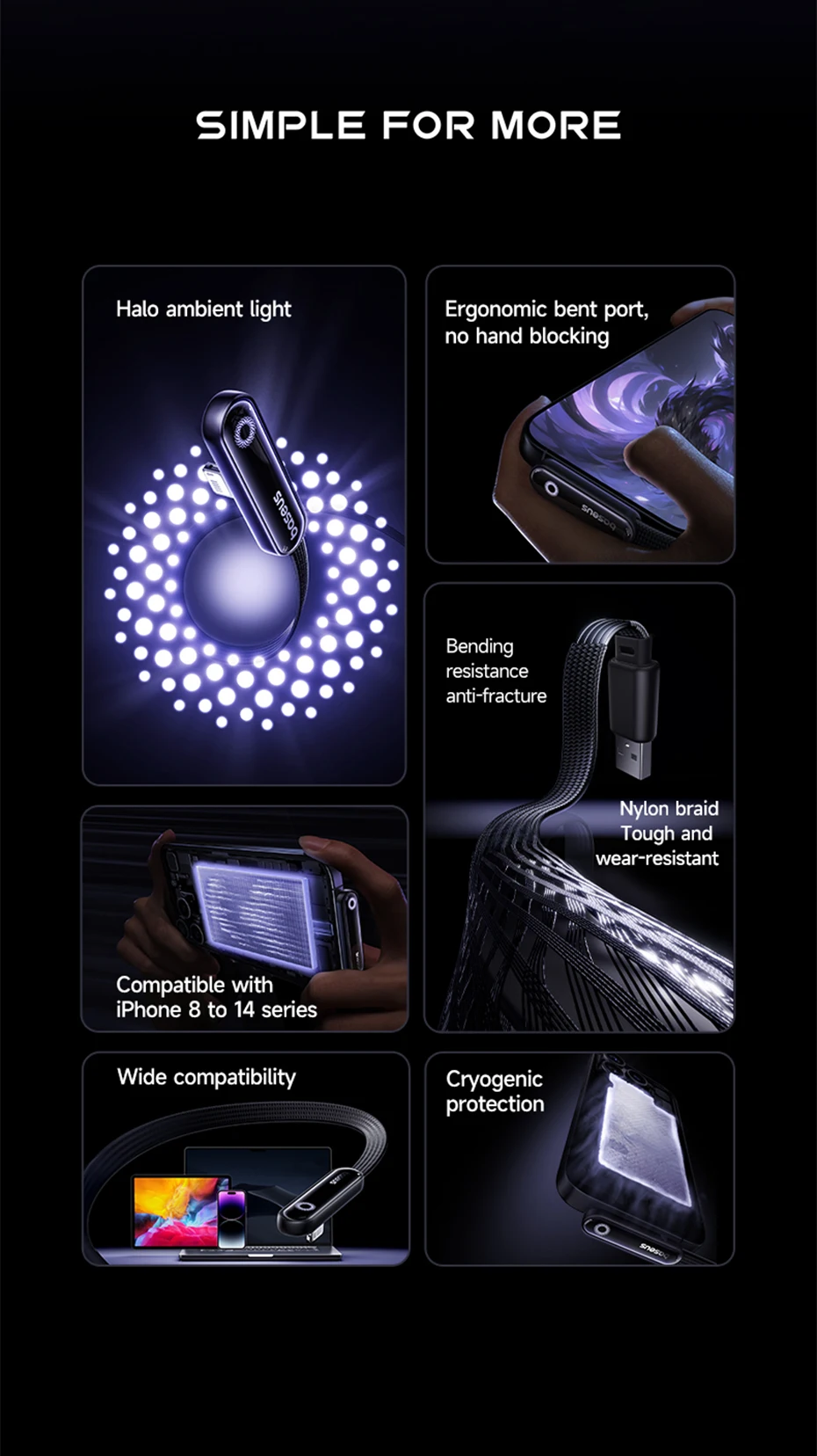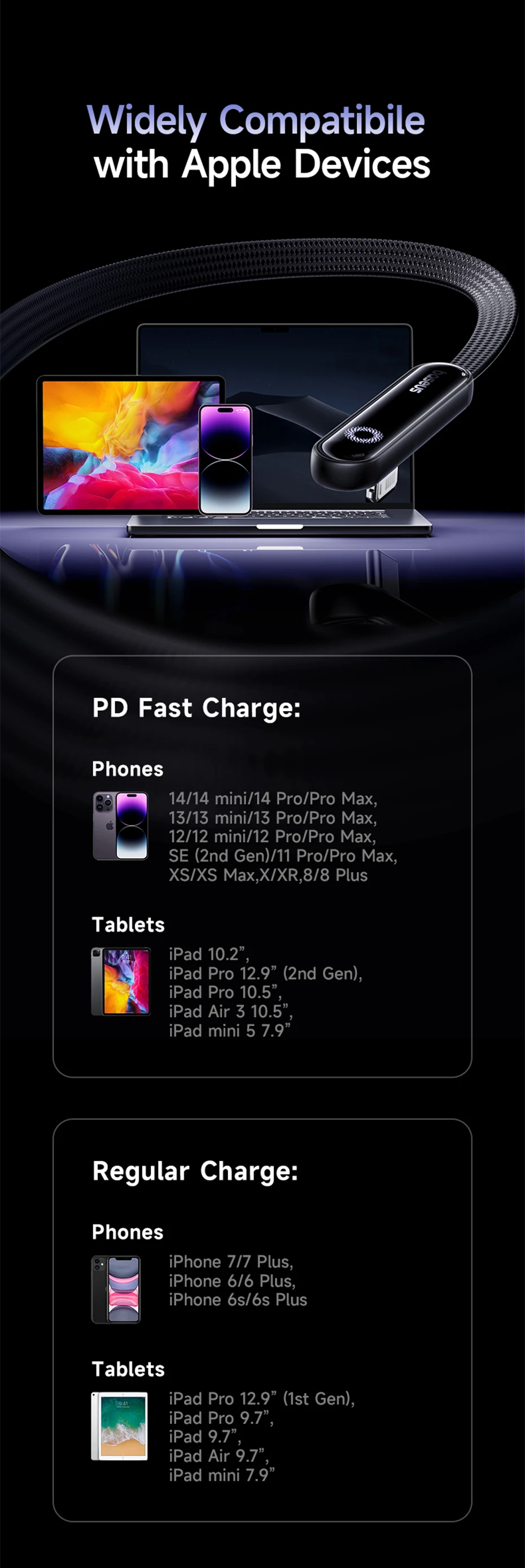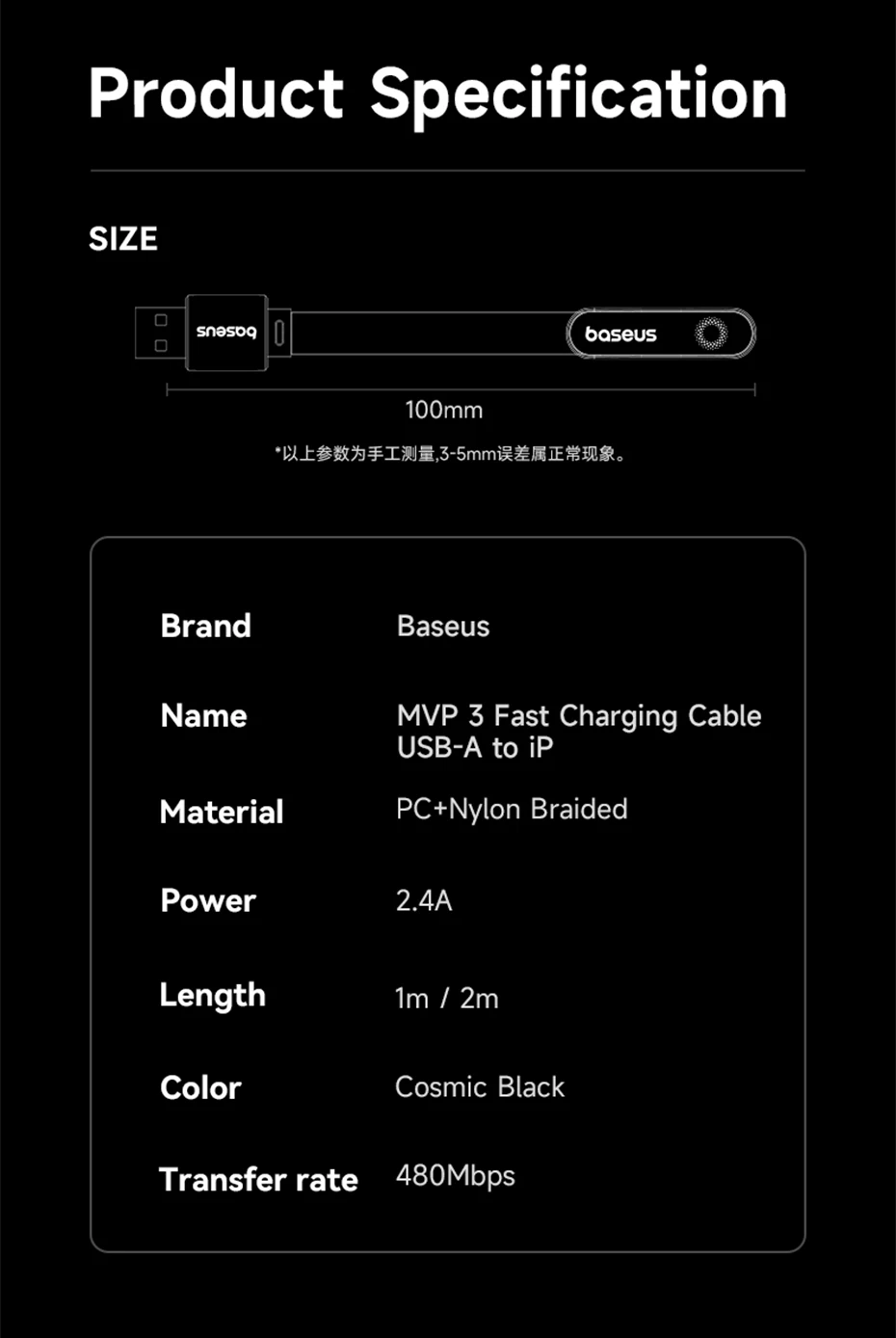 Comprar Baseus MVP3 Cable USB cortado 2.4A para iPhone 14 13 12 Cable USB de luz LED para iPad Pro Cable de datos de carga rápida para iPhone 7 6S