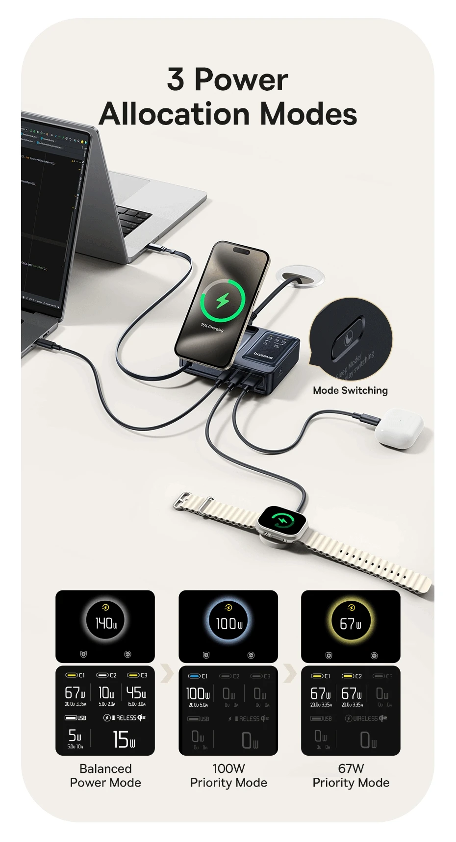 Comprar Baseus Nomos 140W cargador de escritorio tableta portátil cargador rápido para Lenovo retráctil USB C cargador de teléfono para iPhone Samsung
