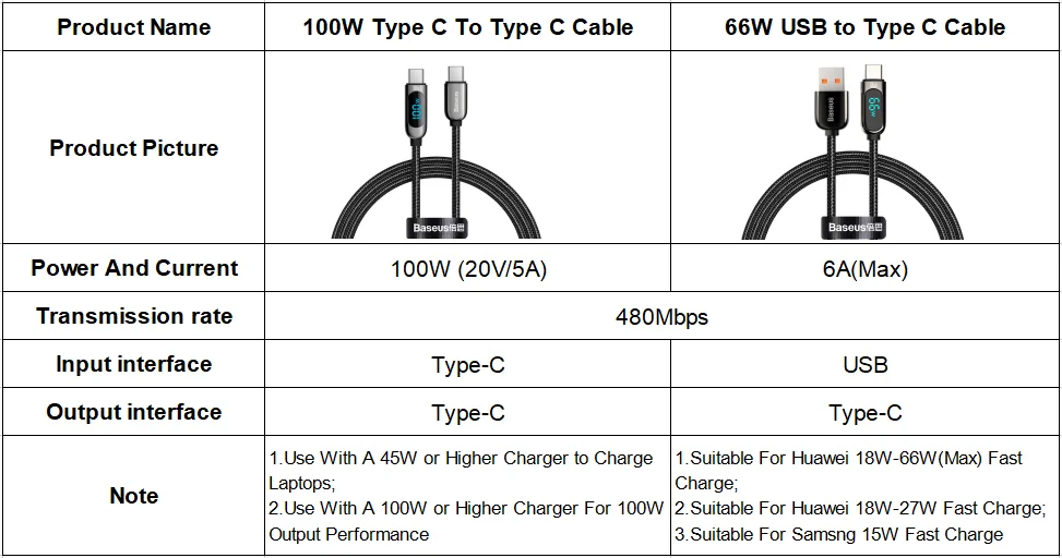 Comprar Baseus pantalla LED Cable USB tipo C para iPhone 15 Xiaomi Samsung 5A cargador de carga rápida USBC USB-C Cable de datos Cable tipo C