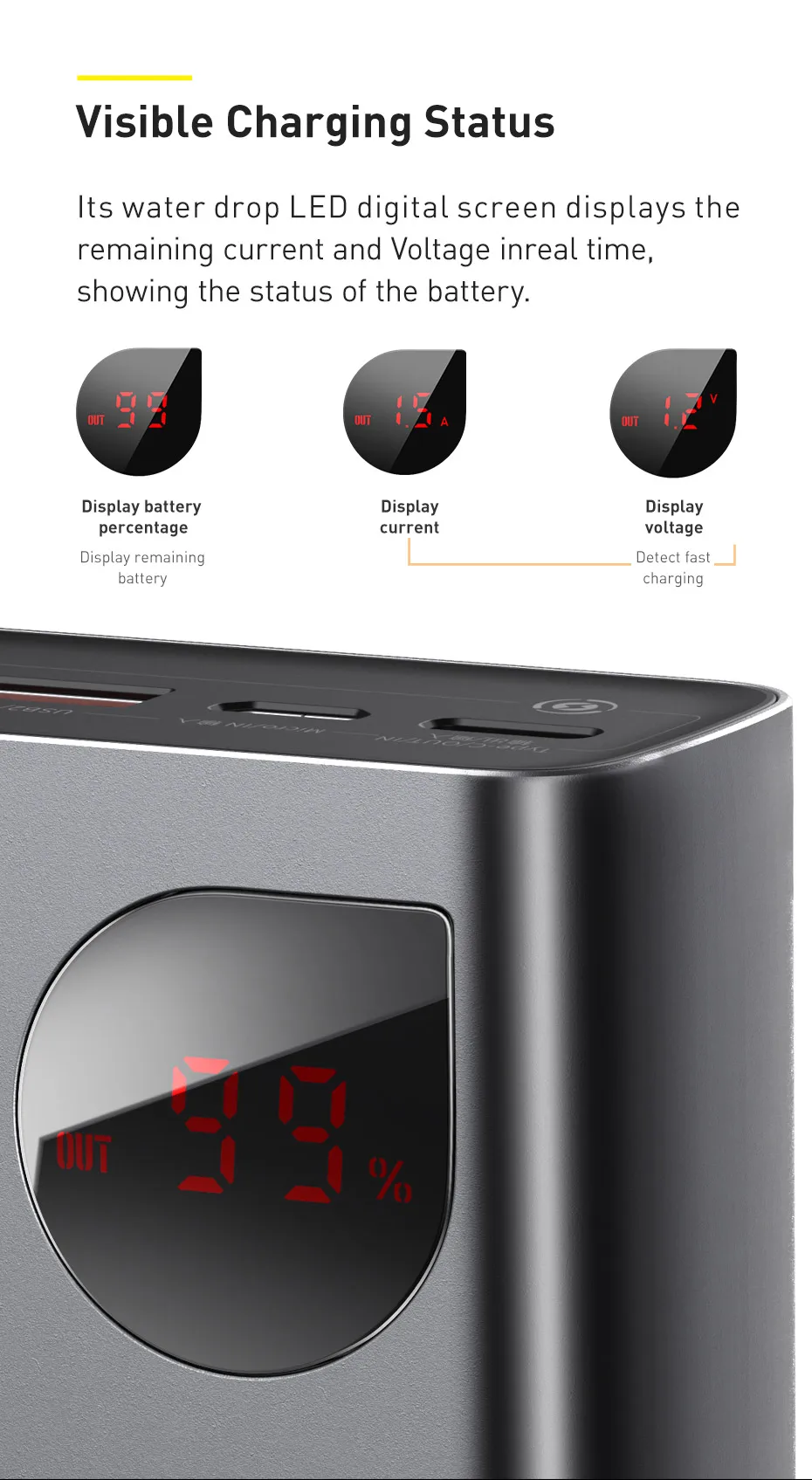 Su pantalla digital LED de caída de agua muestra la corriente y el voltaje restantes en tiempo real, mostrando el estado de la batería.