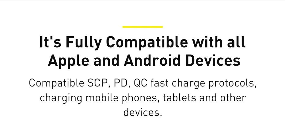 Dispositivos compatibles con SCP.Protocolos de carga rápida PD, QC. Carga de teléfonos móviles, tabletas y otros dispositivos.