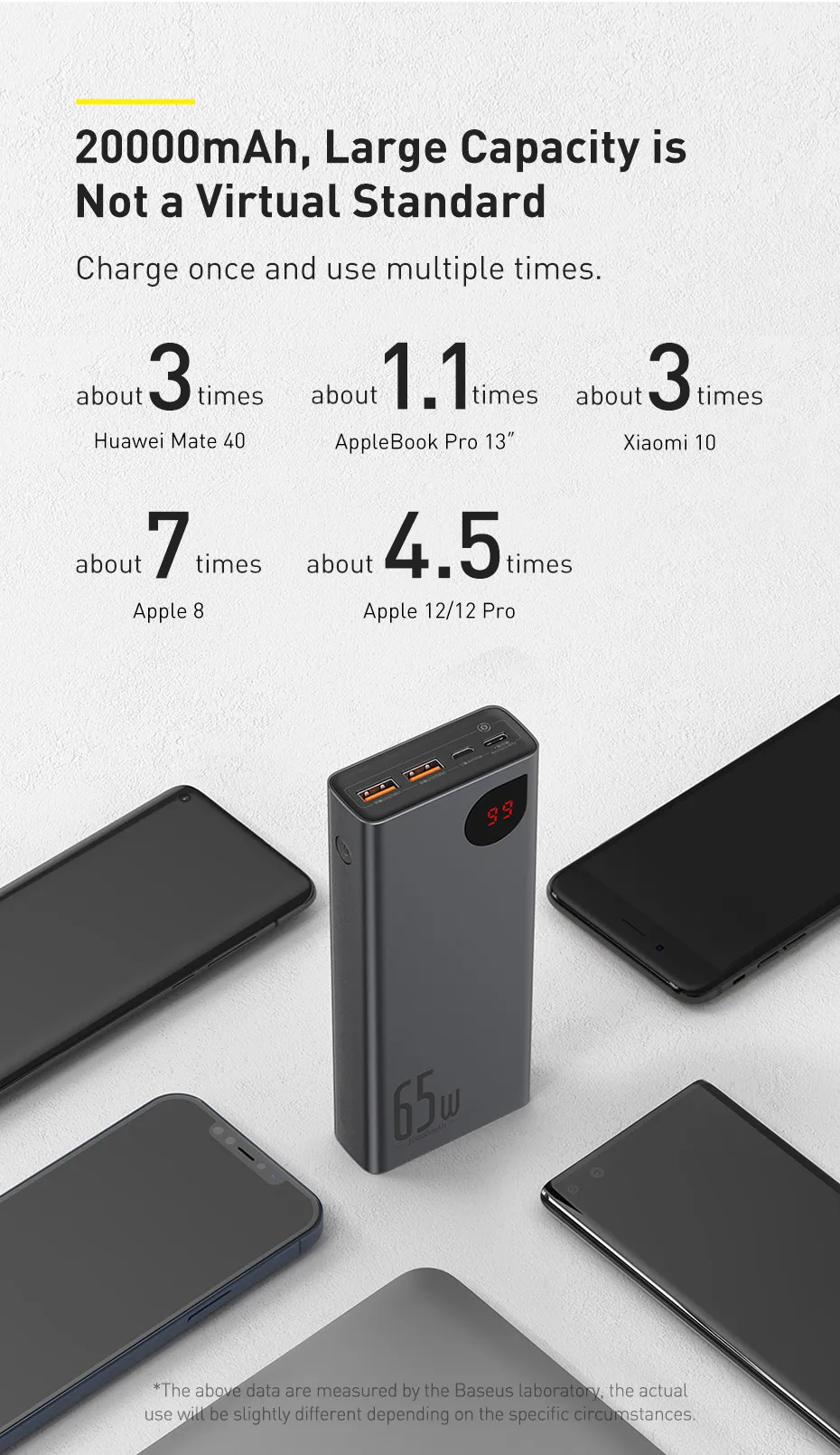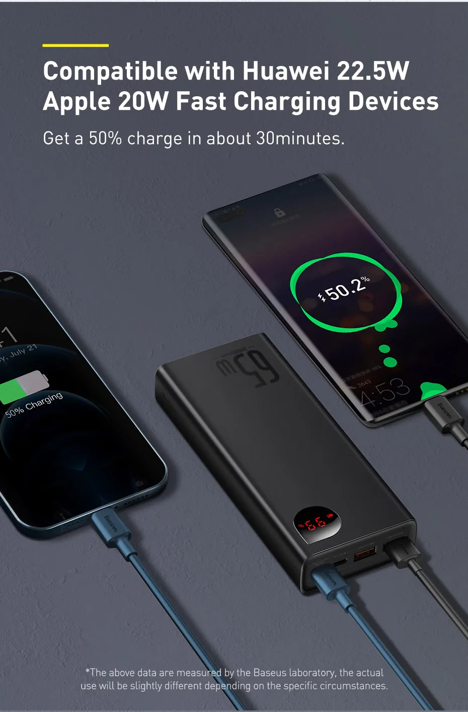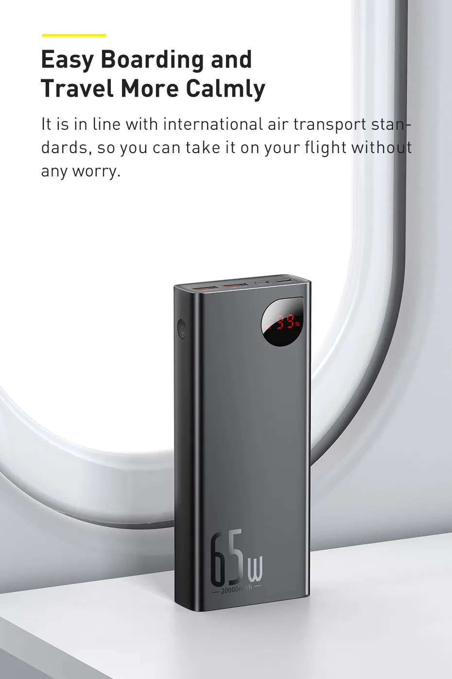 Comprar Baseus PD 65W banco de energía carga rápida batería externa cargador portátil 20000mAh PowerBank para iPhone Xiaomi MacBook