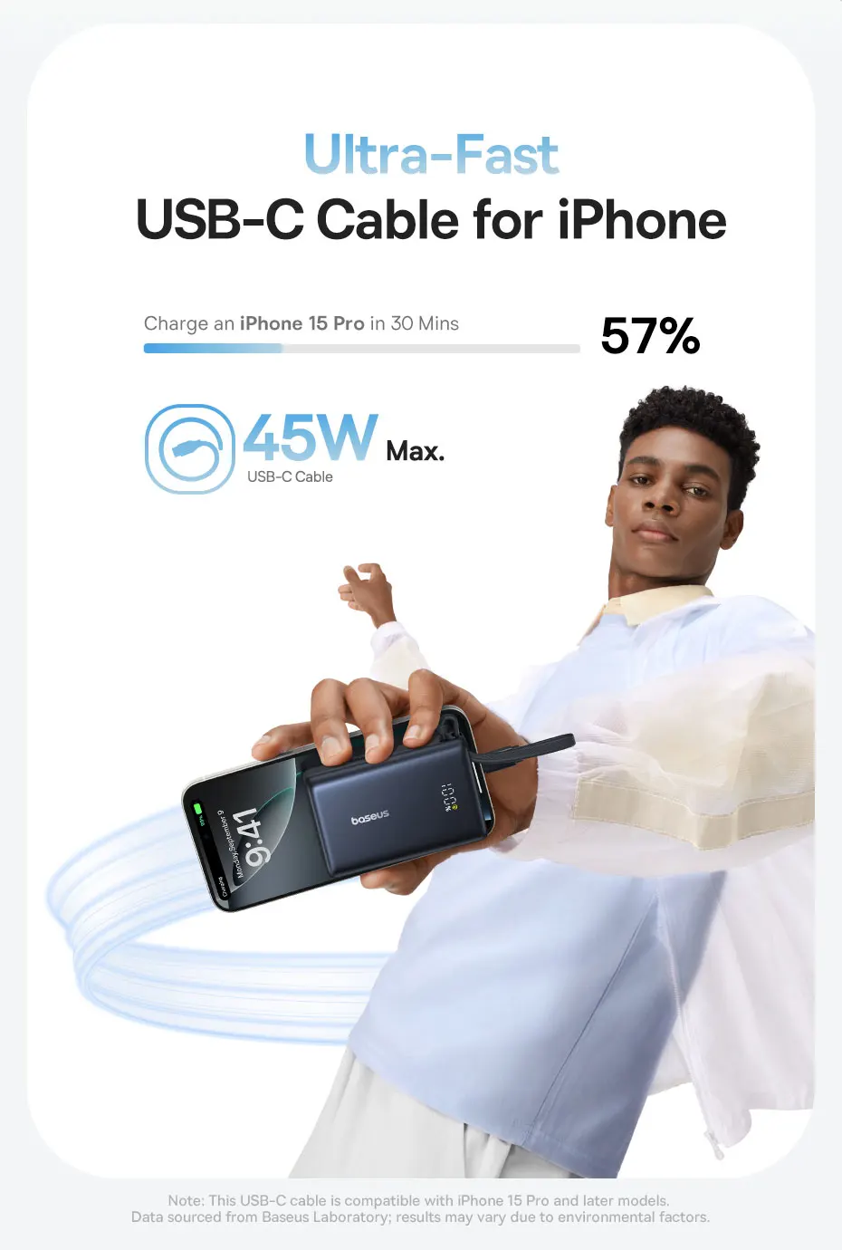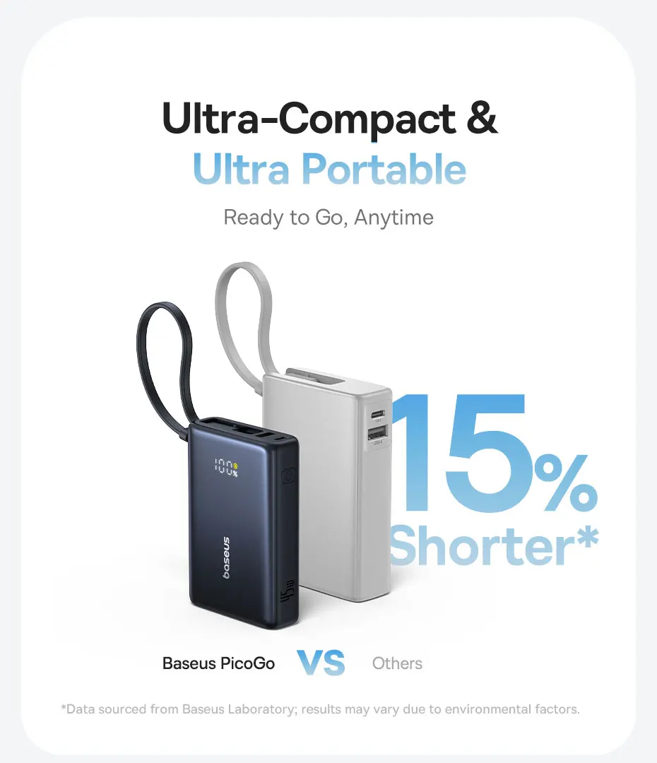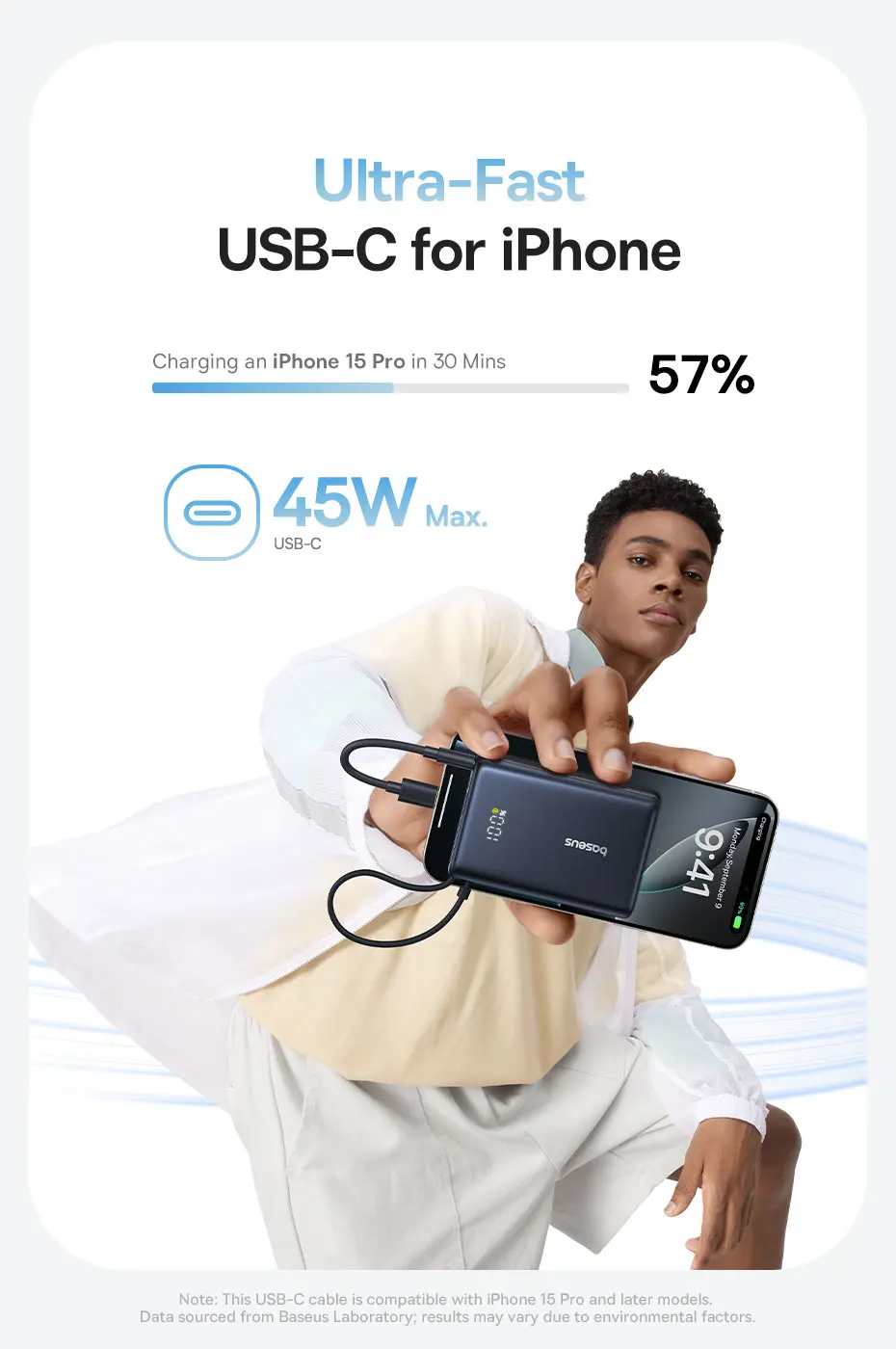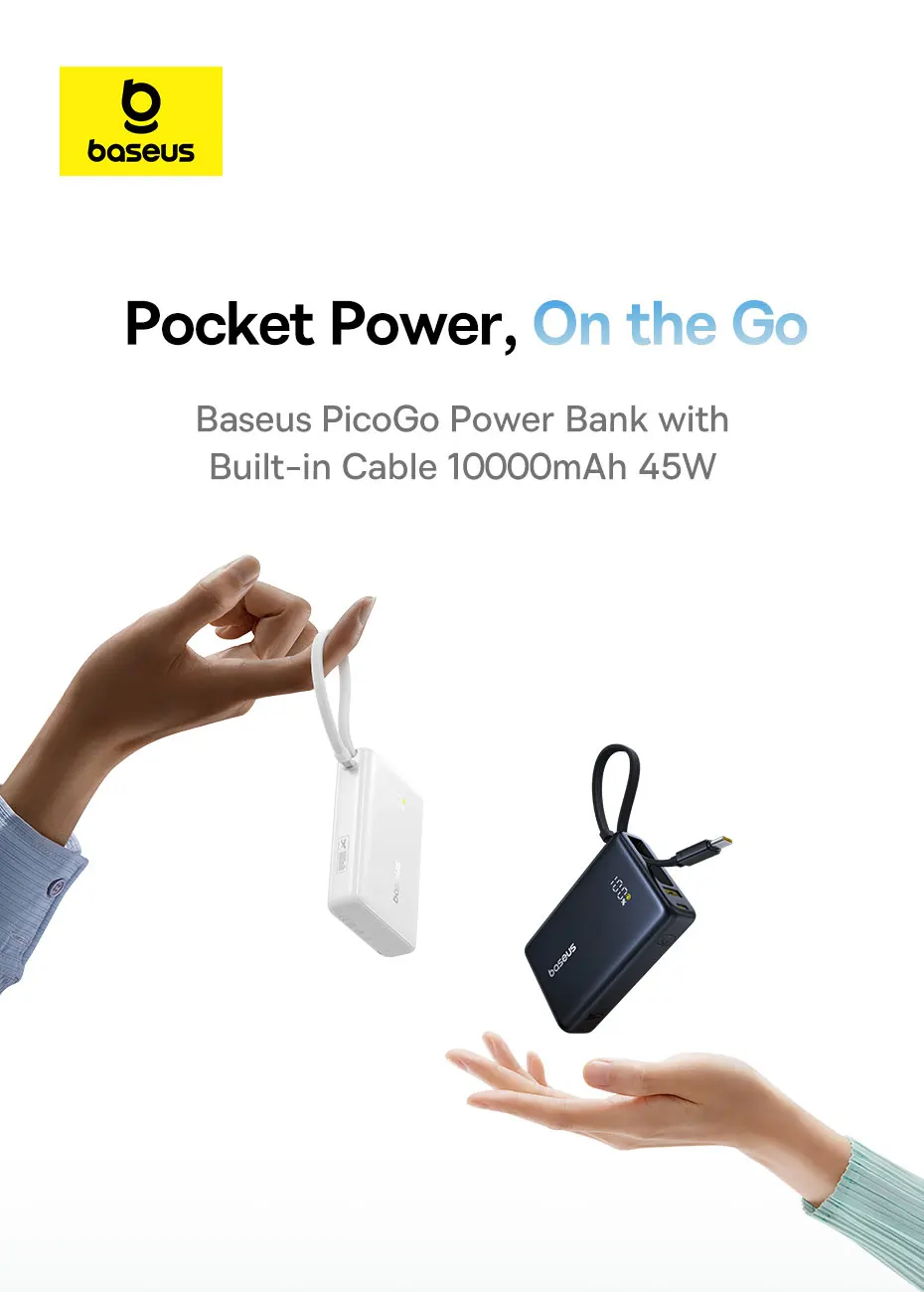 Comprar Baseus Picogo 45W Power Bank 10000mah Super Mini batería portátil, pantalla digital inteligente para iPhone 16 Pro Max Xiaomi Samsung