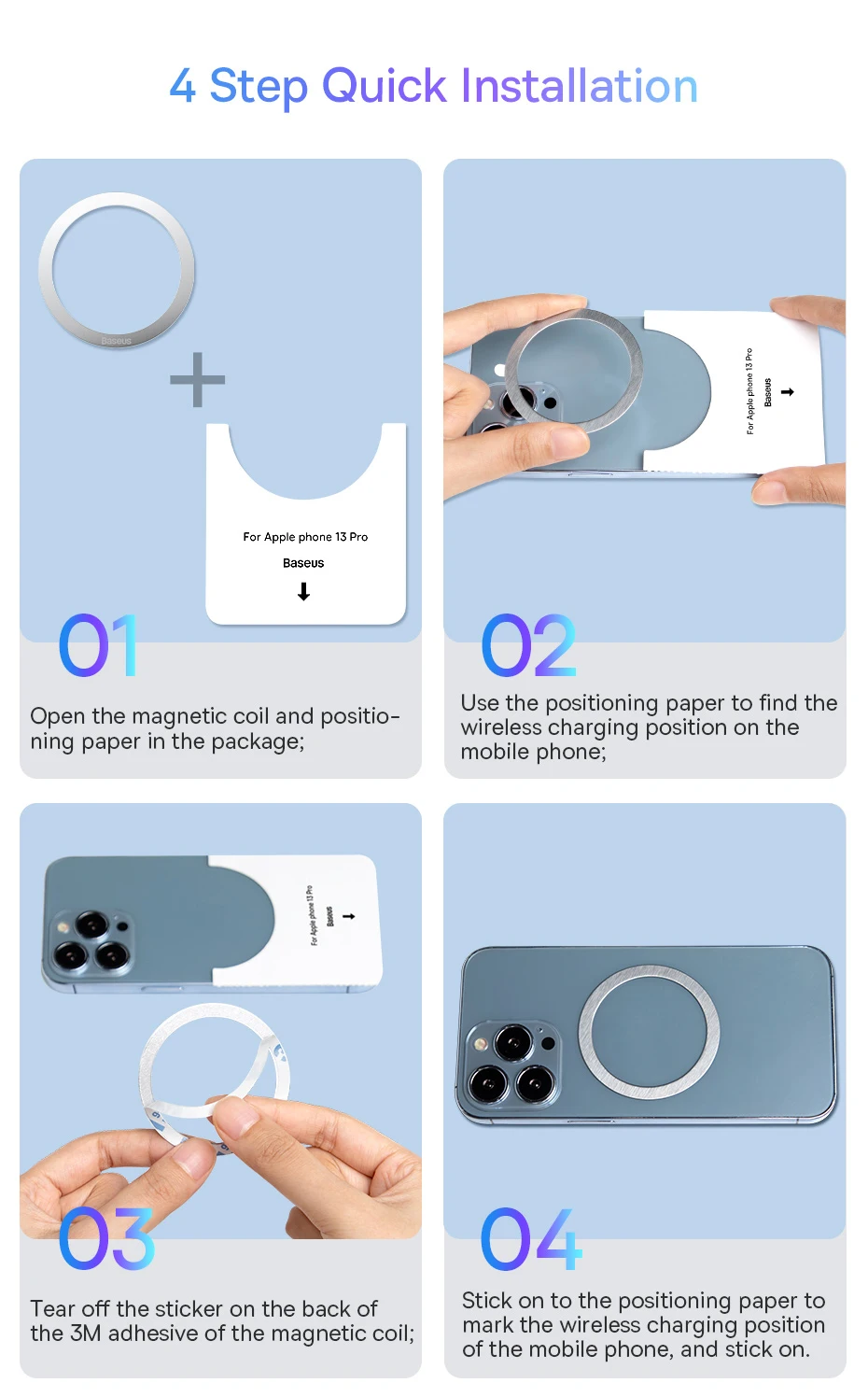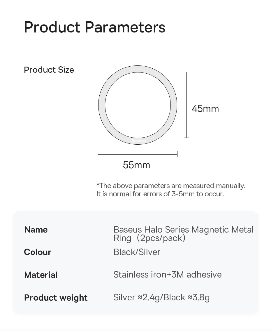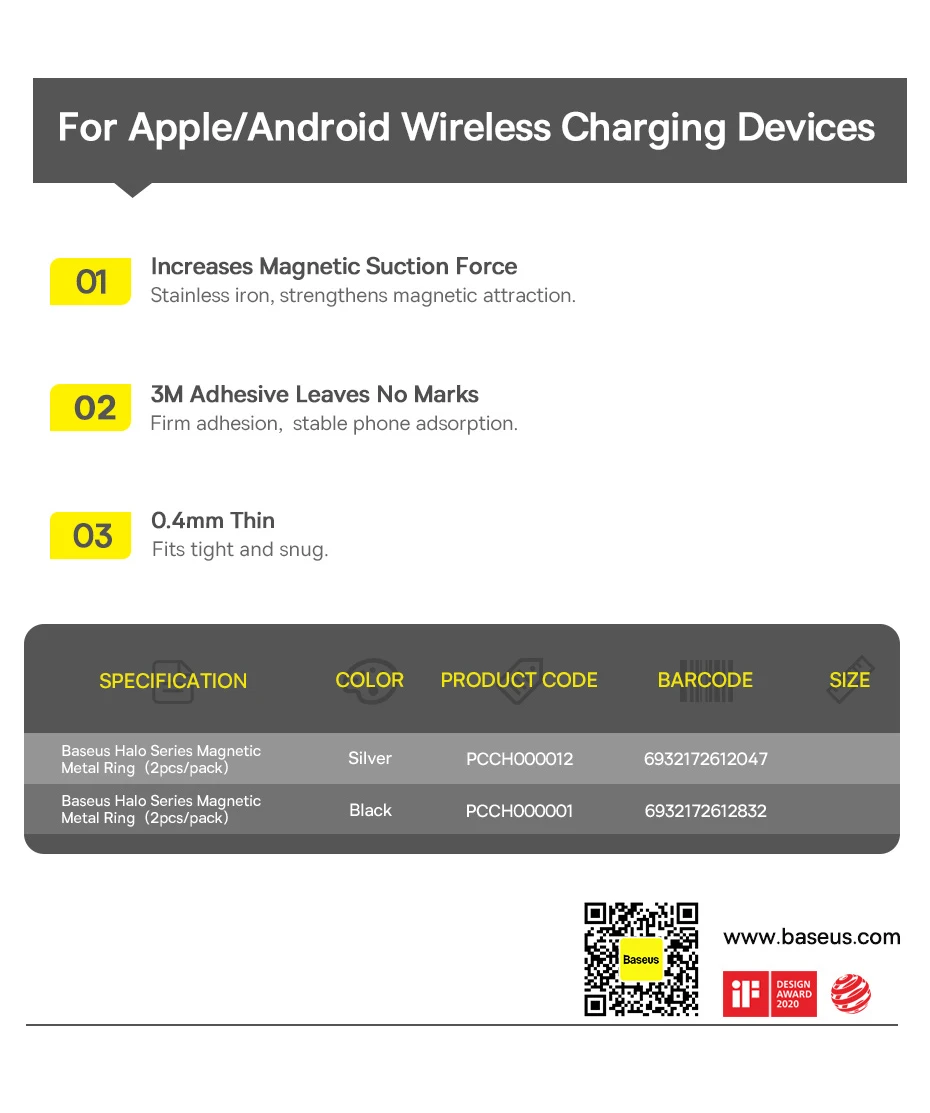 Baseus-placa de Metal magnética, anillo adhesivo para cargador inalámbrico magnético, soporte de teléfono para coche, disco, hoja de hierro para iPhone, Samsung, Xiaomi