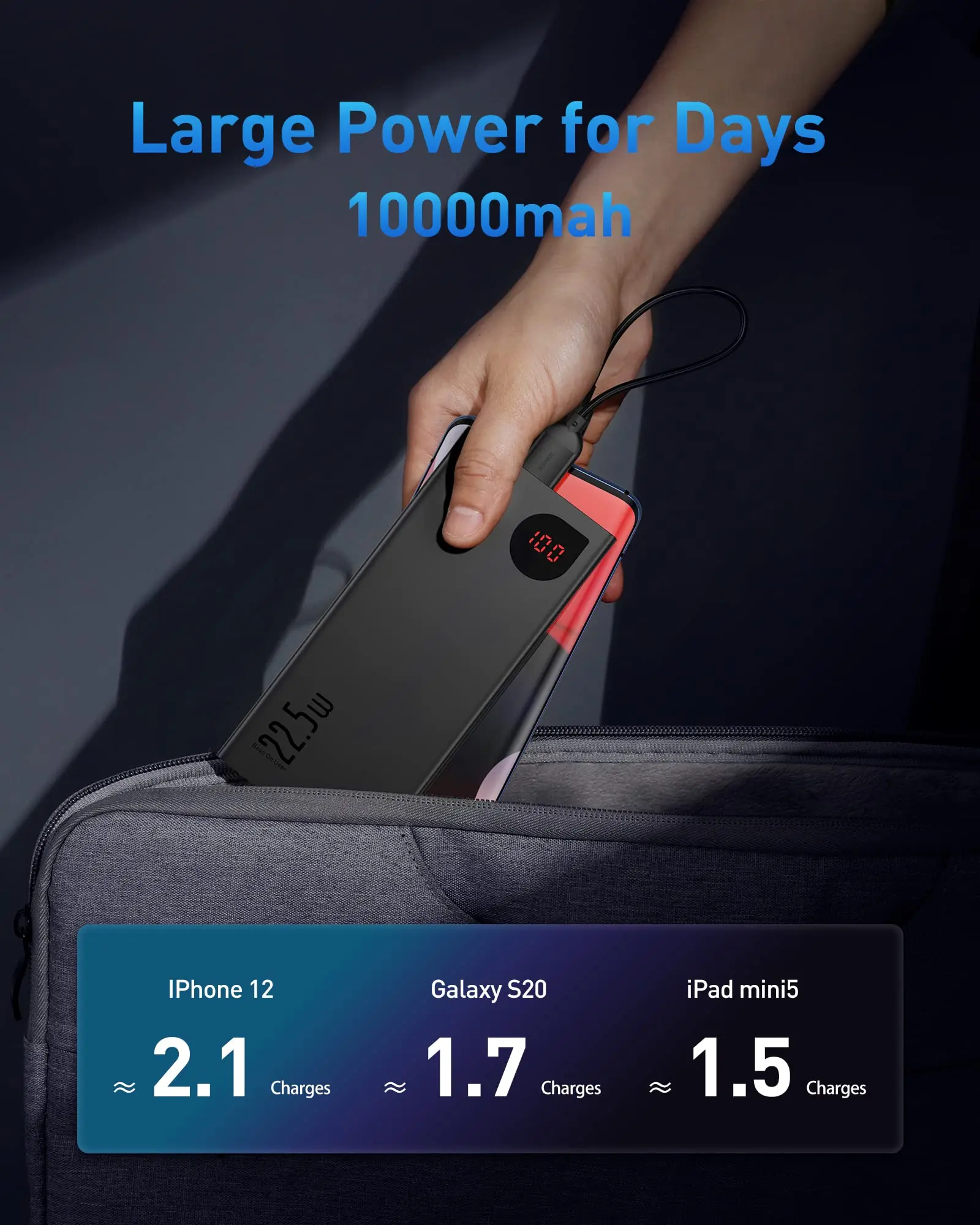 Comprar Baseus Power Bank 10000mAh con 22,5 W PD cargador de batería portátil de carga rápida para iPhone 16 15 14 13 Pro Max Xiaomi