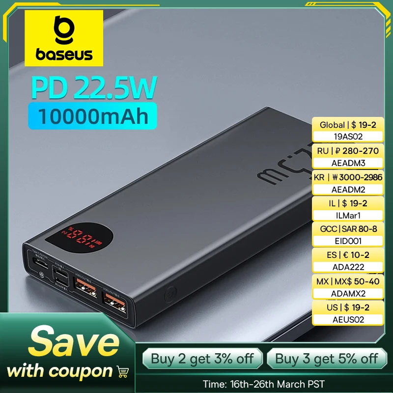 Comprar Baseus Power Bank 10000mAh con 22,5 W PD cargador de batería portátil de carga rápida para iPhone 16 15 14 13 Pro Max Xiaomi