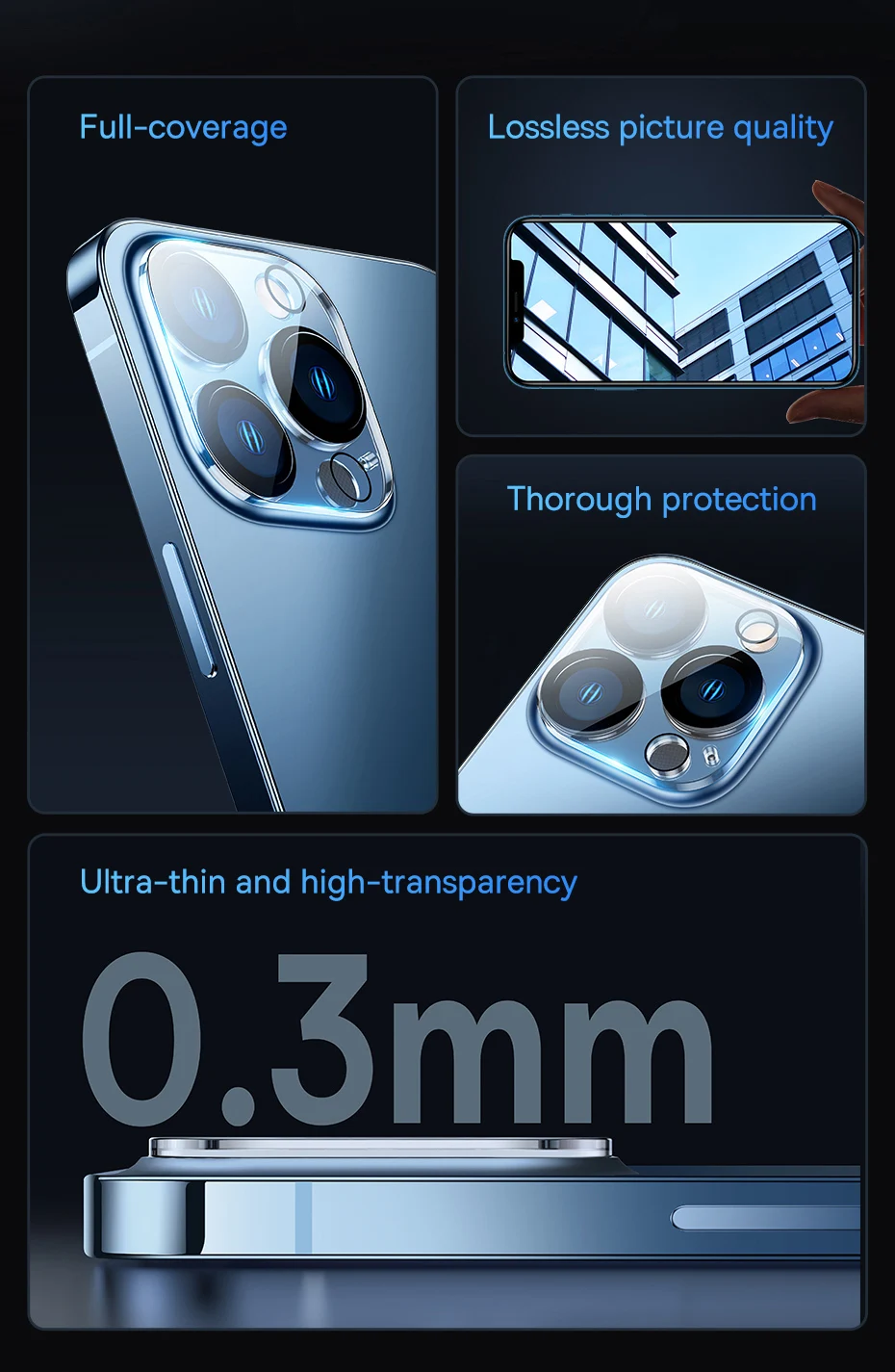 Comprar Baseus-Protector de lente de cámara para iPhone 14 Pro Max Plus, cubierta completa de vidrio templado, película de protección de cámara para iPhone 13 Mini, 2 uds.