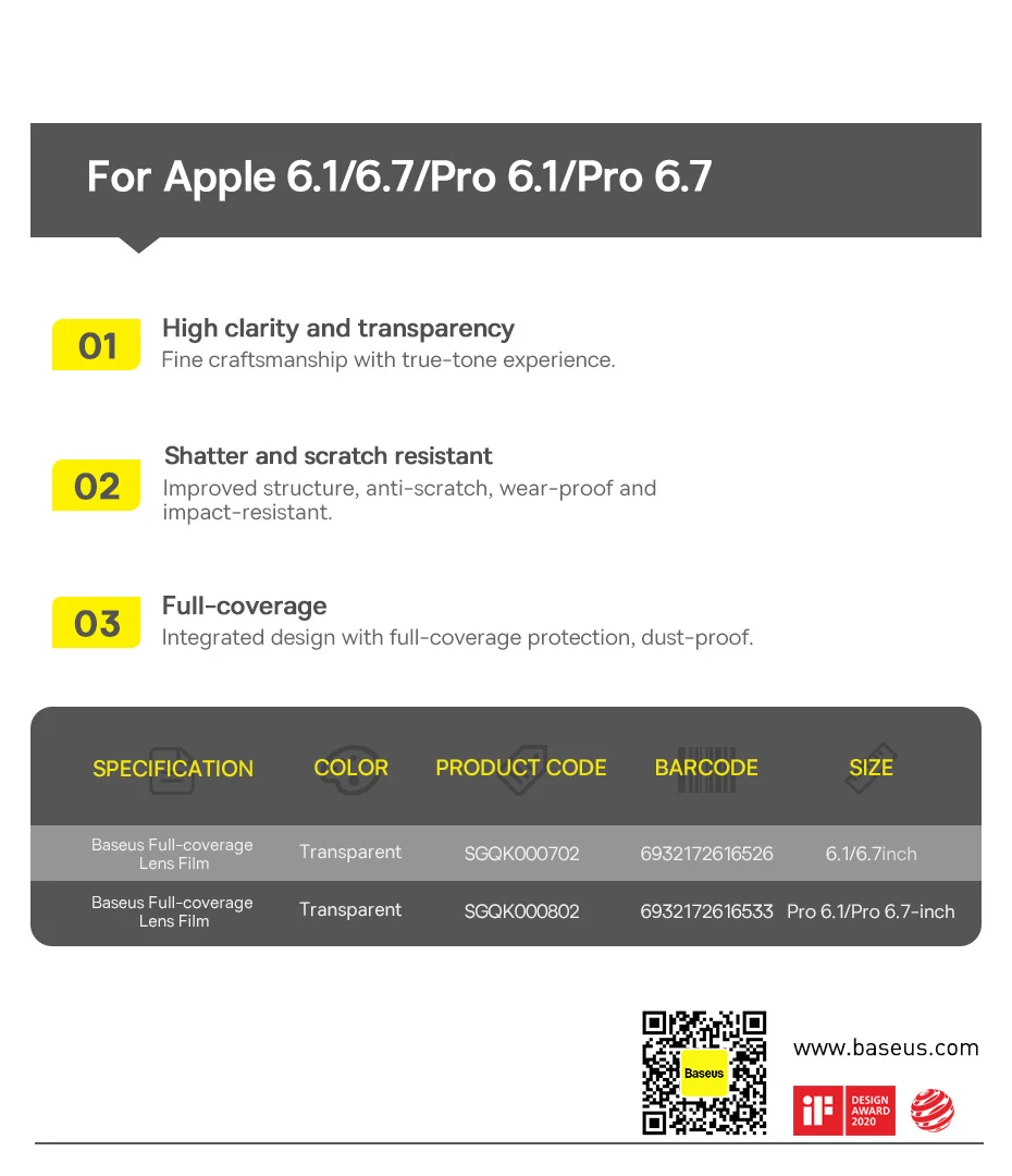Baseus-Protector de lente de cámara para iPhone 14 Pro Max Plus, cubierta completa de vidrio templado, película de protección de cámara para iPhone 13 Mini, 2 uds.