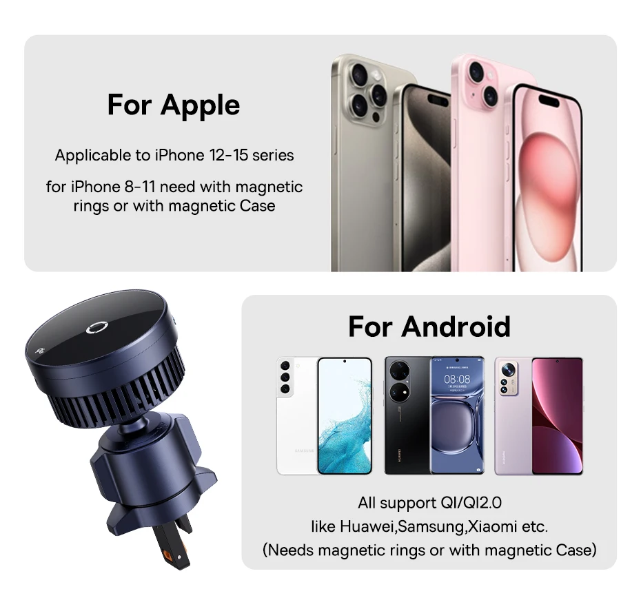 Comprar Baseus Qi2.0-cargador inalámbrico magnético para coche, soporte rápido para ventilación de coche, soporte para teléfono de coche para iPhone 16/15/14/13/12 Pro Max, 15W