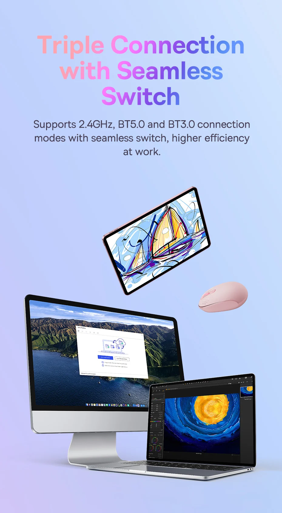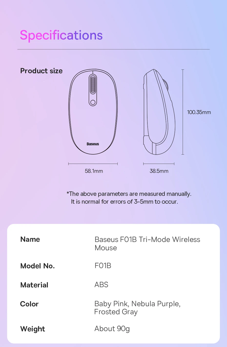 Baseus-ratón inalámbrico F01, periférico ergonómico con Bluetooth 5,0, 2,4G, para PC, MacBook, Tablet, ordenador portátil, oficina y juegos