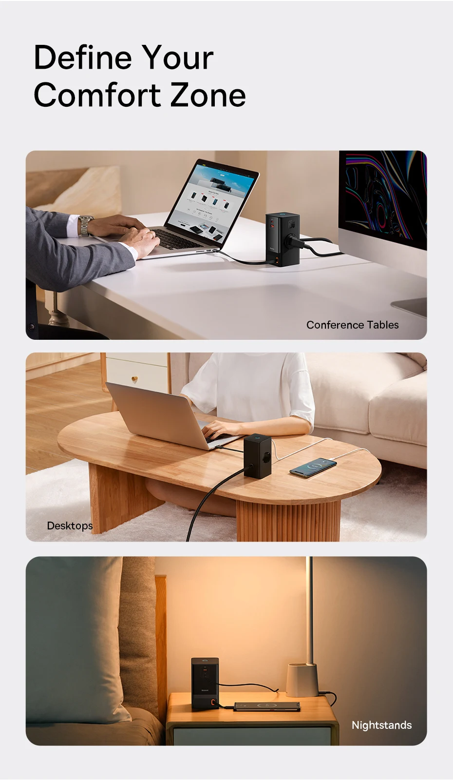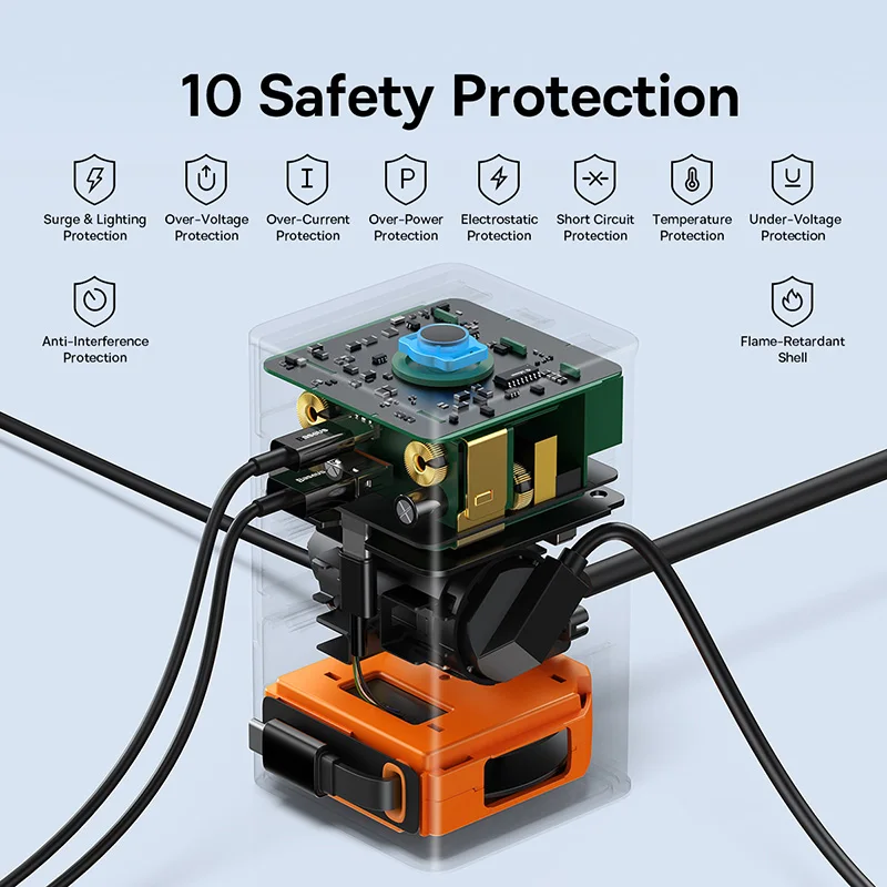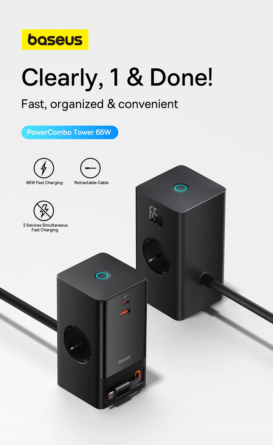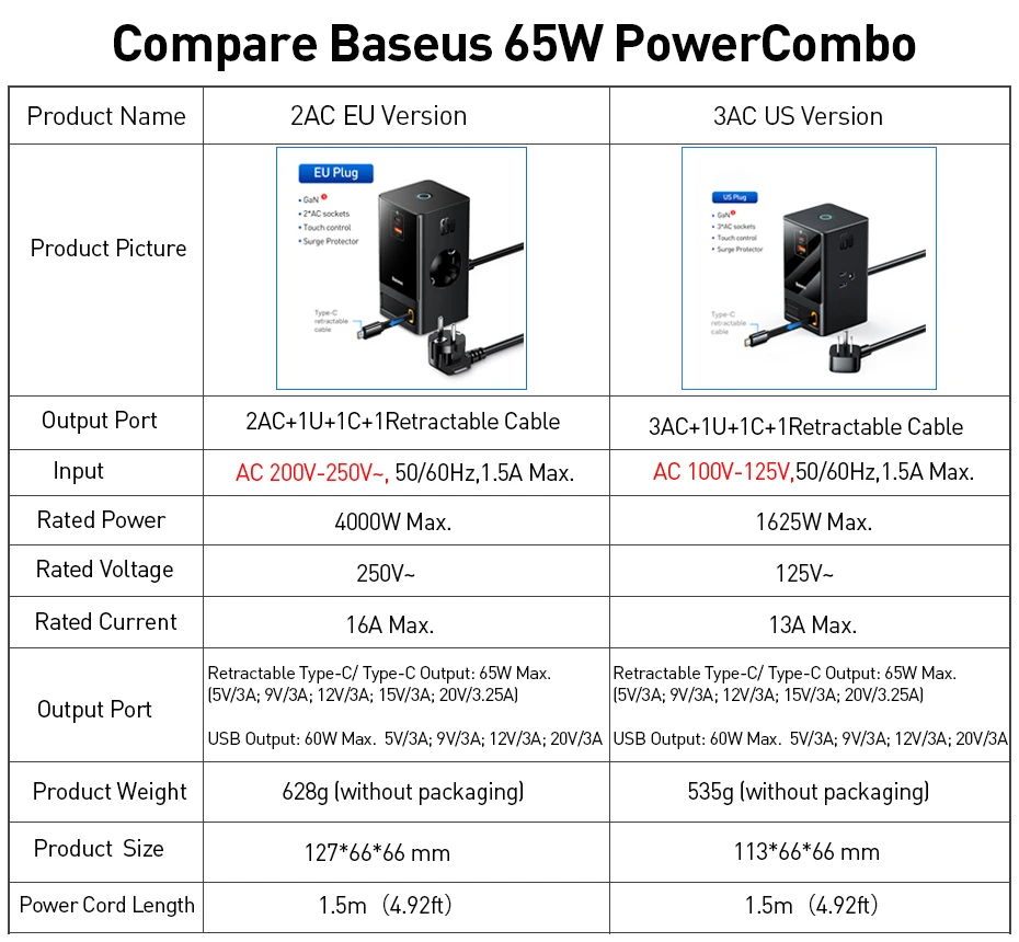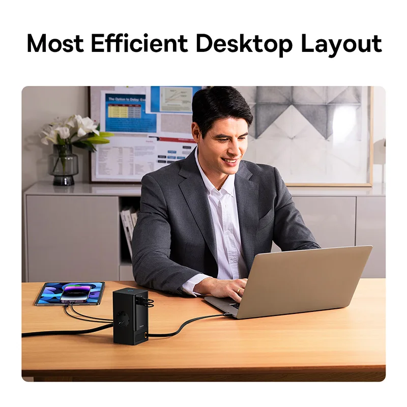 Comprar Baseus-regleta de alimentación de 65W, enchufe estadounidense, 3AC, USB C, enchufe GaN, Control táctil inteligente, estación de escritorio, carga rápida para iPhone y ordenador portátil