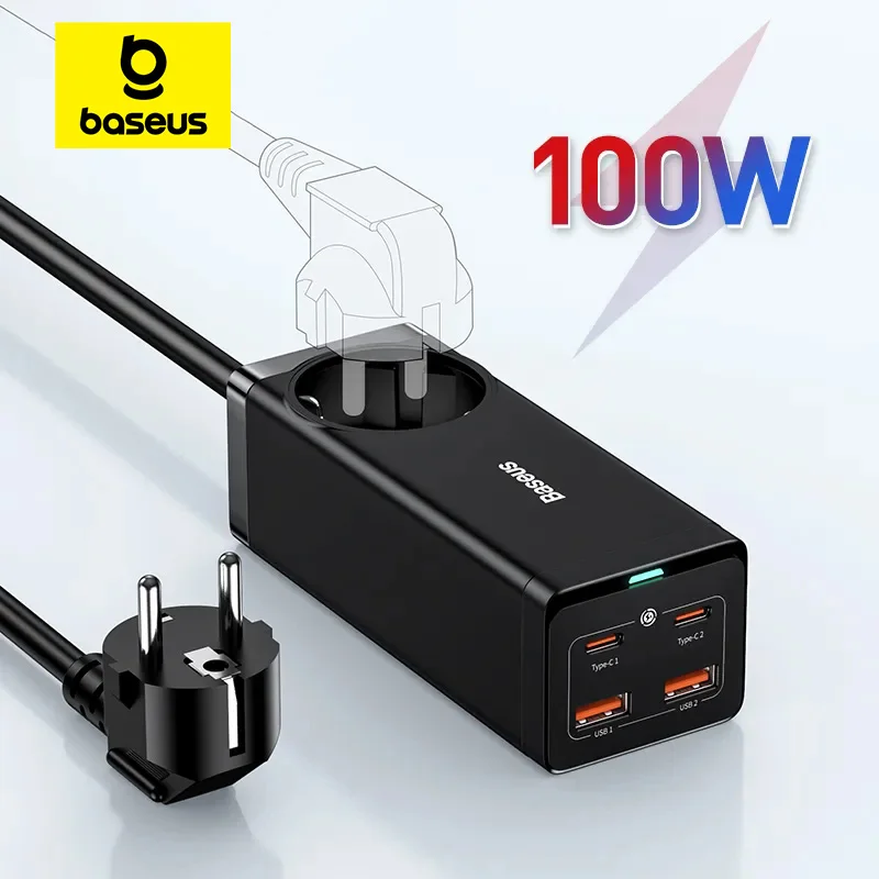 Comprar Baseus-regleta de alimentación GaN3 para Xiaomi, adaptador de viaje con 2USB tipo C, Cable de 1,5 m, para UE y EE. UU.