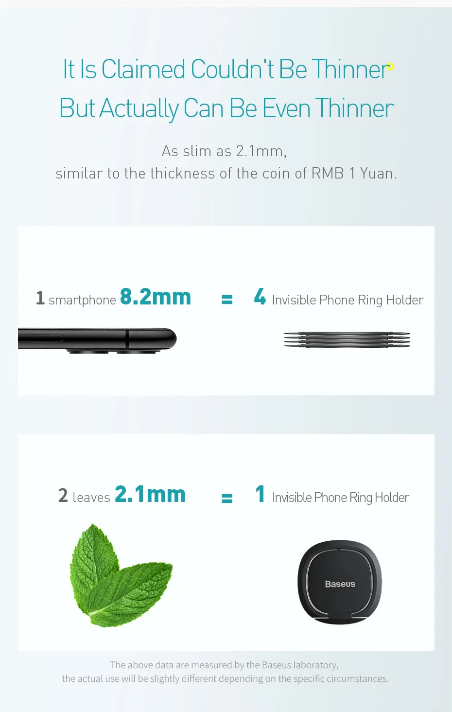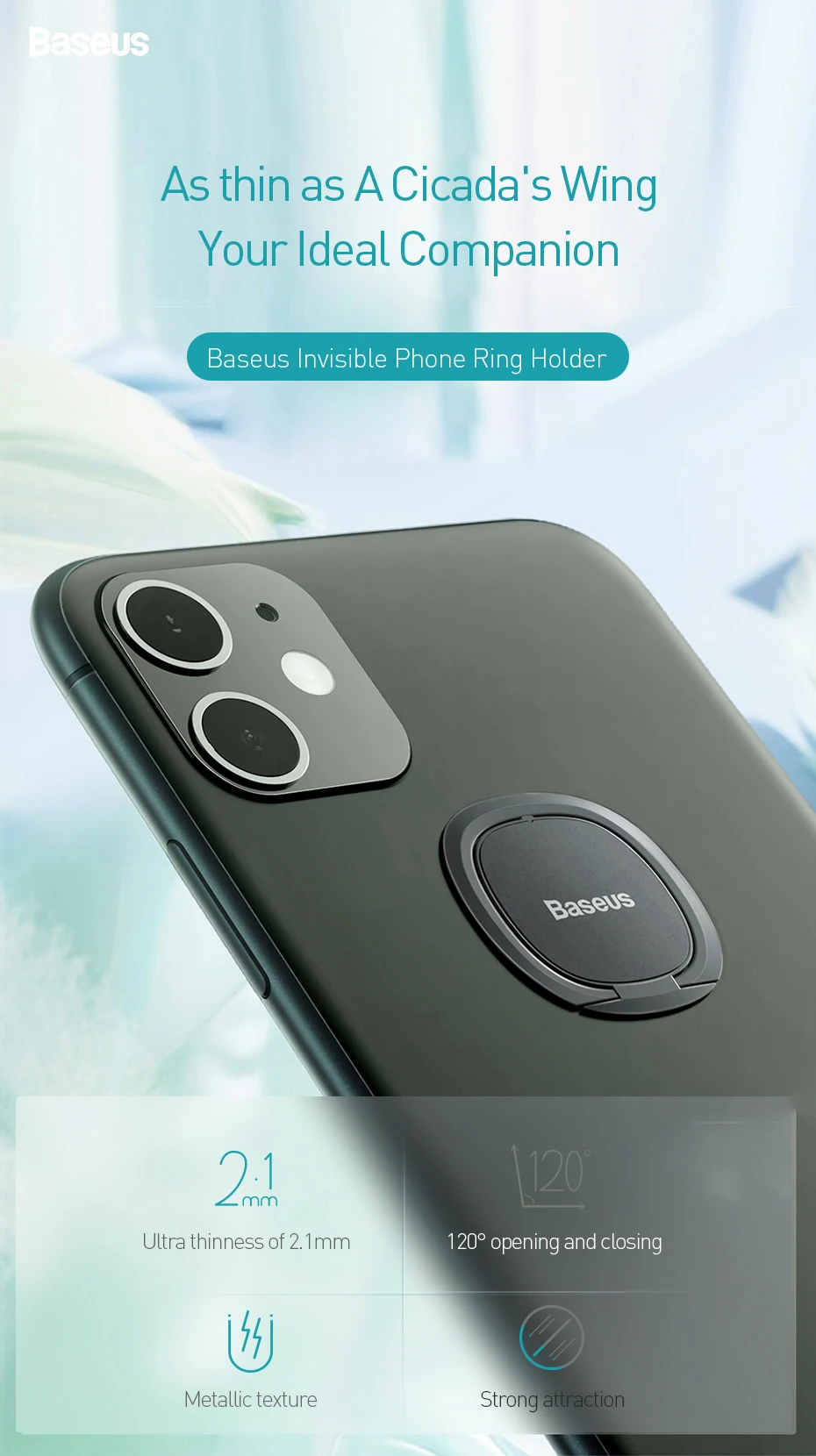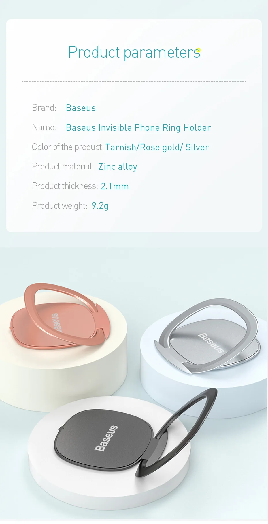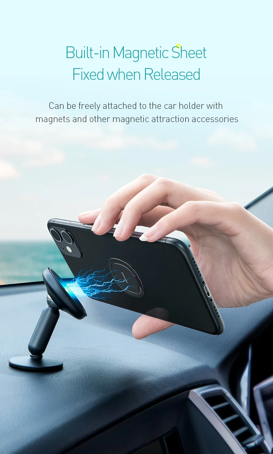 Comprar Baseus-Soporte de anillo para teléfono móvil, accesorio 3 en 1 de 2,1mm, con almohadilla magnética, Invisible, para coche