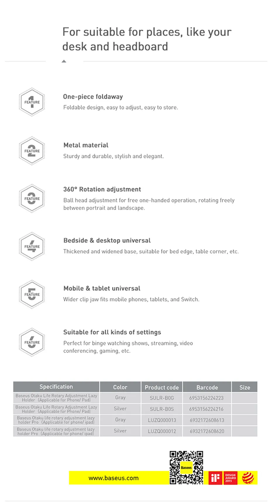 Baseus Otaku Life Soporte giratorio de ajuste Perezoso