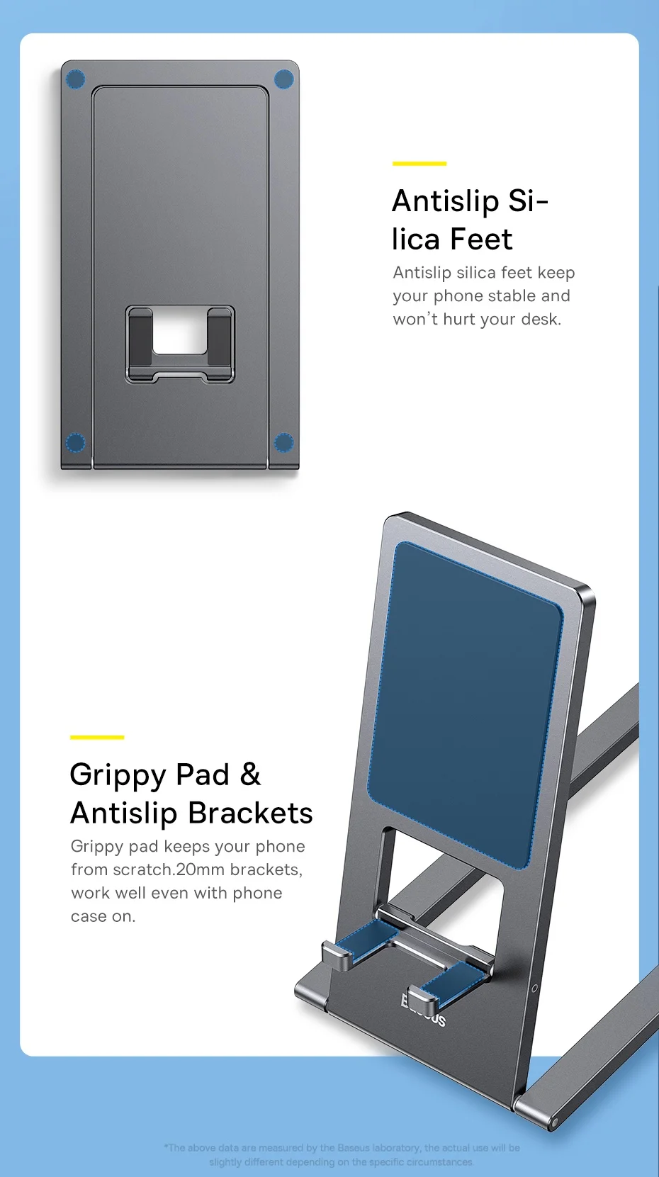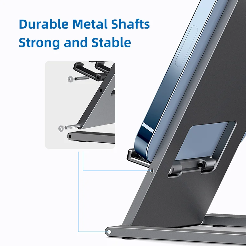 Ejes dobles con anillos de bloqueo de tornillo y almohadillas de sílice antideslizantes, que evitan que su teléfono se caiga.