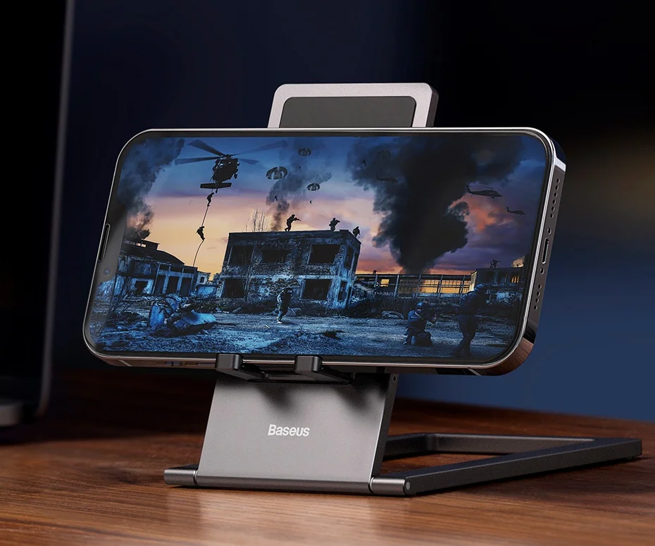 Comprar Baseus soporte de Metal para teléfono plegable para iPhone 16 15 14 13 Pro Max soporte de escritorio para teléfono móvil accesorios para teléfono móvil