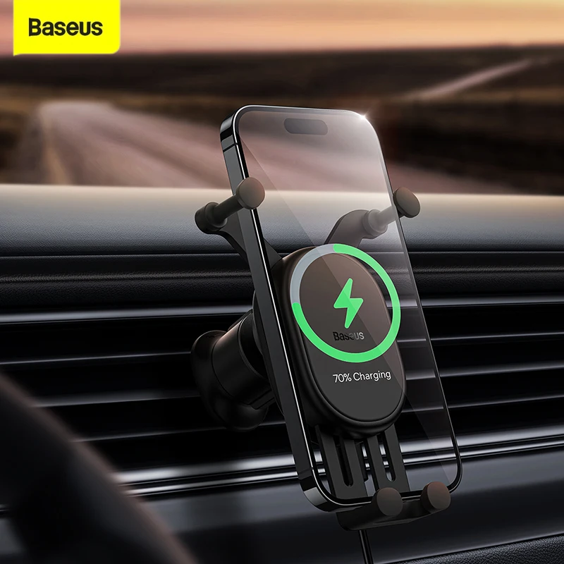 Comprar Baseus soporte de teléfono para coche 15w qi cargador inalámbrico para iPhone 11 12 13 14 pro mini Samsung S21 soporte para teléfono cargador de energía para teléfono de coche