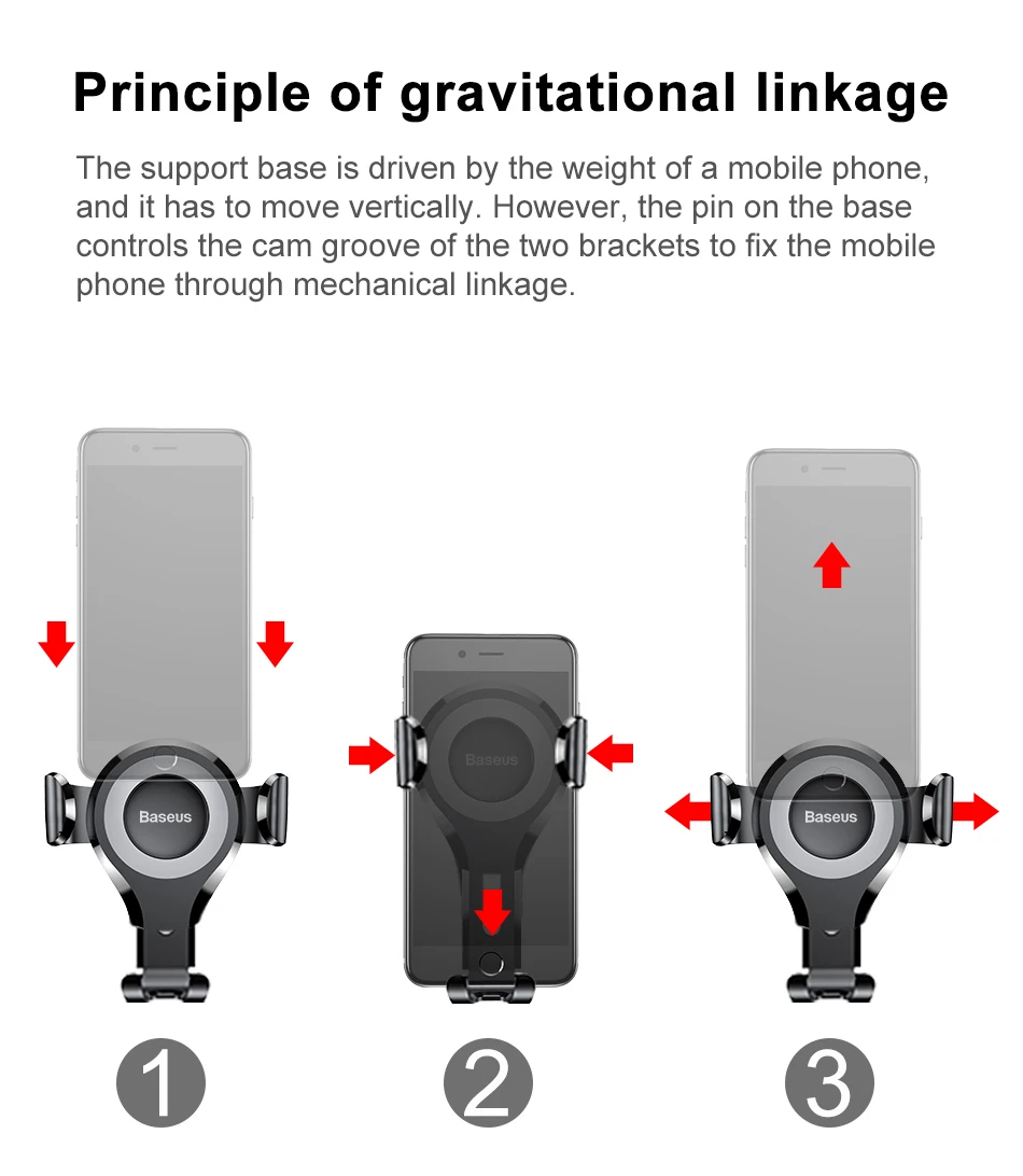 지지대는 휴대 전화의 무게에 의해 좌우되며 수직으로 움직여야합니다. 그러나베이스의 핀은 두 개의 브래킷의 캠 홈을 제어하여 기계적 연결을 통해 휴대폰을 고정시킵니다.