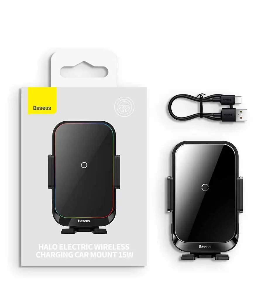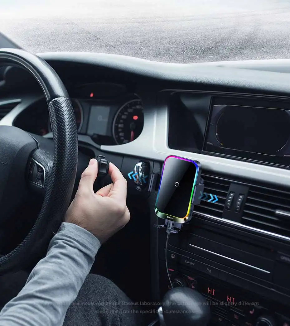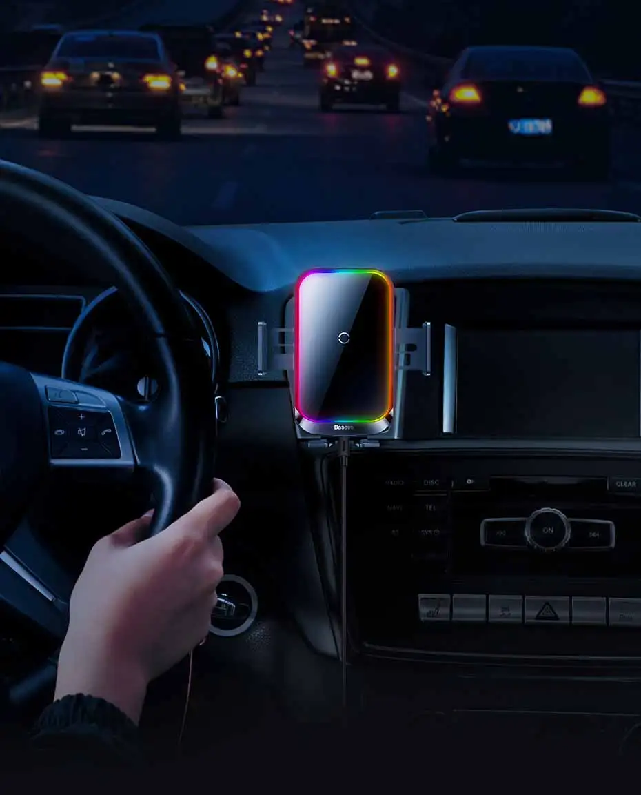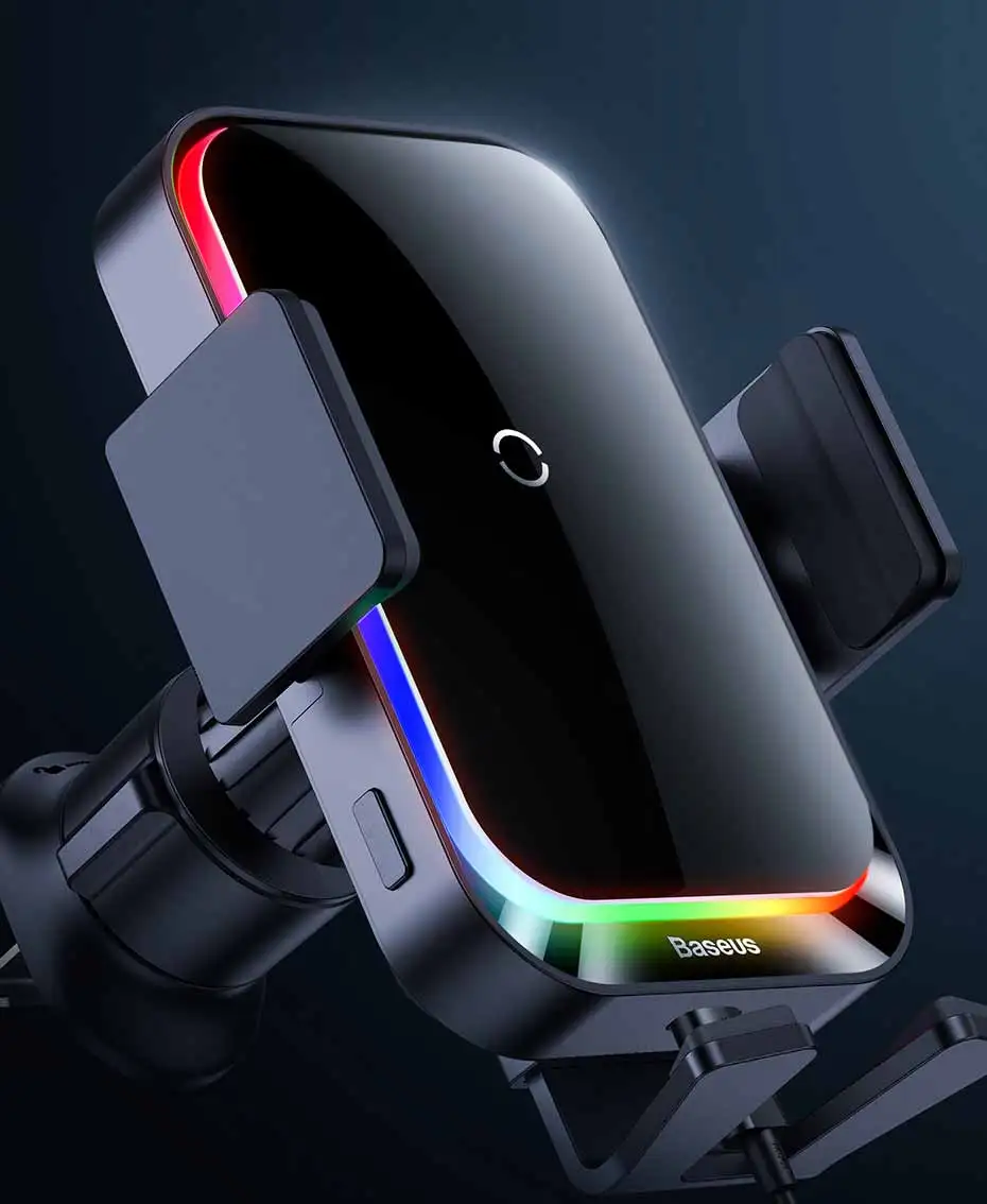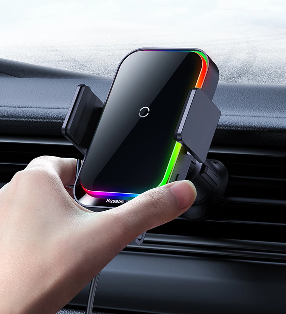 Comprar Baseus-Soporte de teléfono para coche, cargador inalámbrico con infrarrojos, RGB15W, QI, para iPhone, Xiaomi, Samsung, de carga rápida y fácil Control