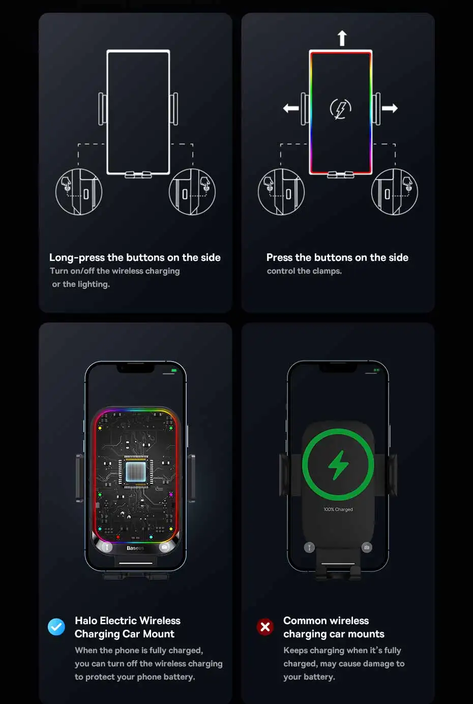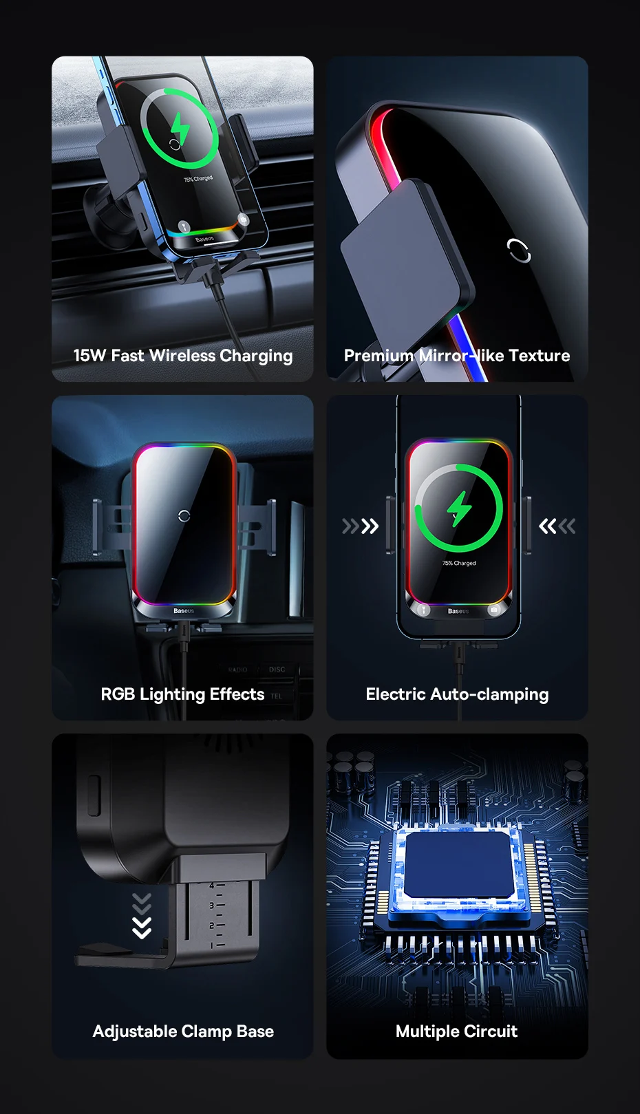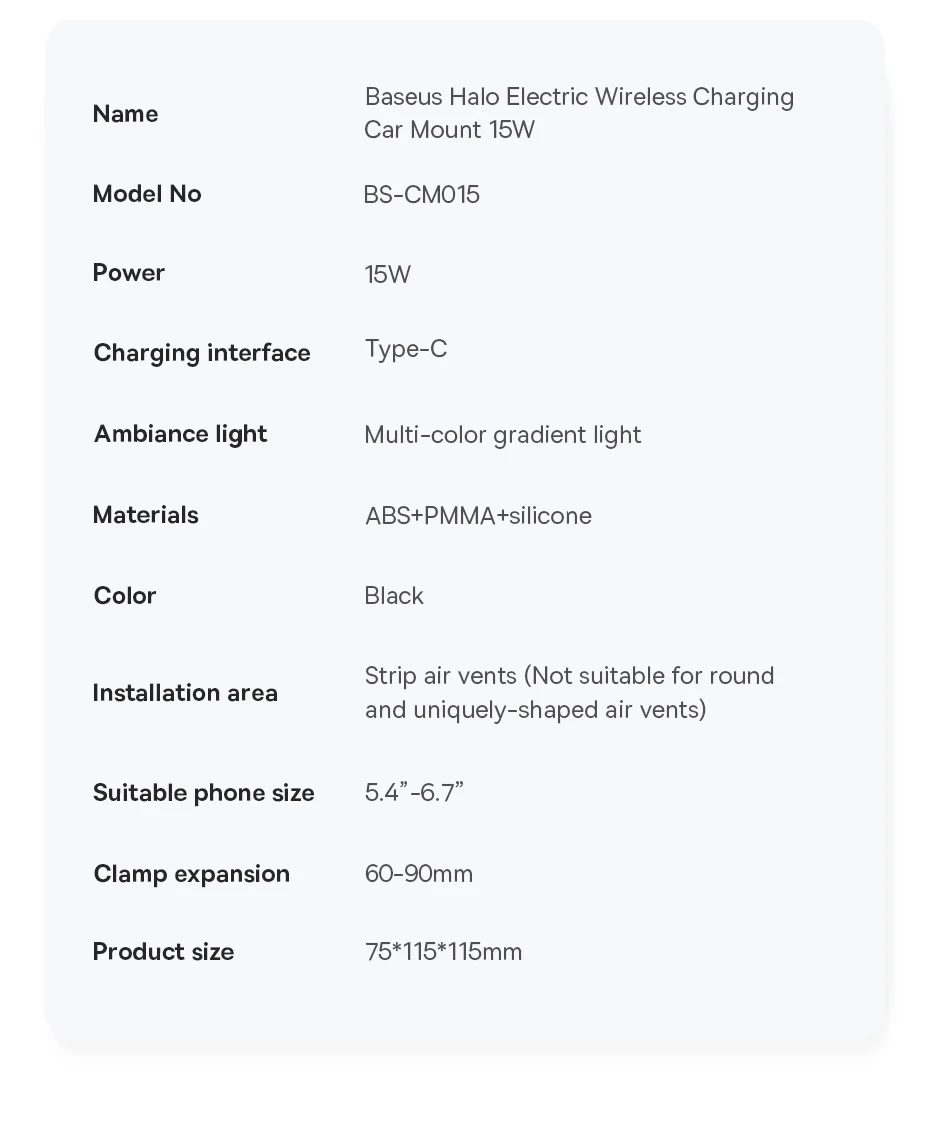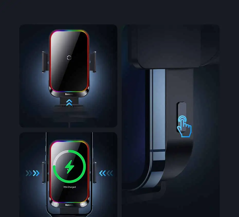 Comprar Baseus-Soporte de teléfono para coche, cargador inalámbrico con infrarrojos, RGB15W, QI, para iPhone, Xiaomi, Samsung, de carga rápida y fácil Control