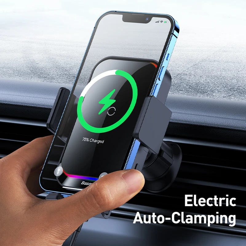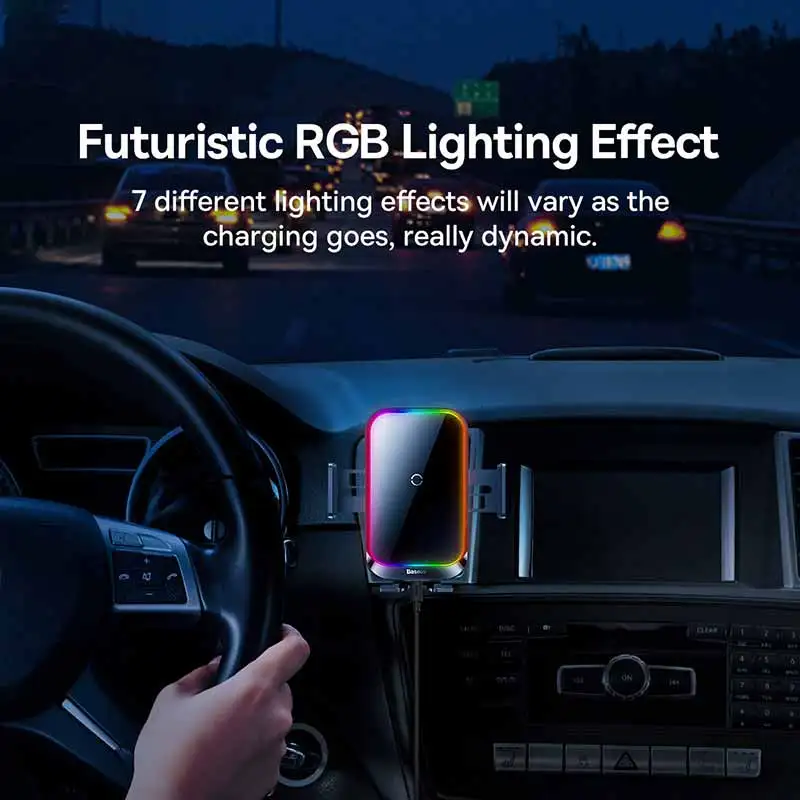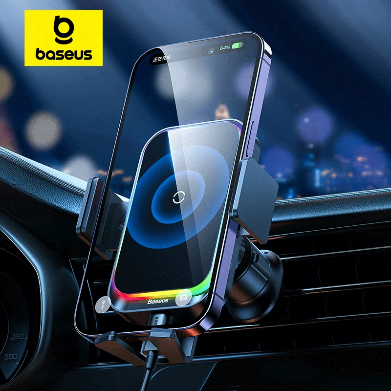 Comprar Baseus-Soporte de teléfono para coche, cargador inalámbrico con infrarrojos, RGB15W, QI, para iPhone, Xiaomi, Samsung, de carga rápida y fácil Control