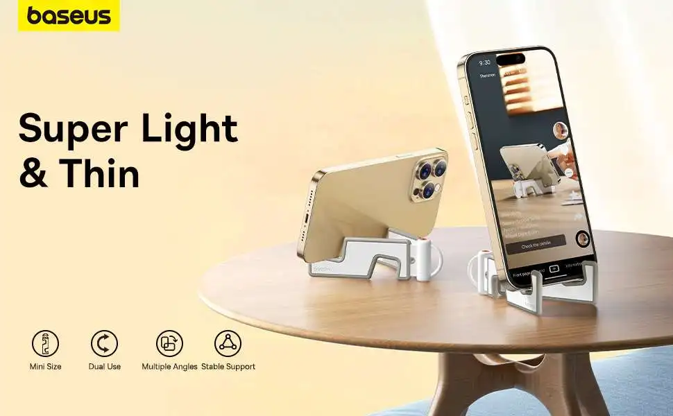 Comprar Baseus soporte de teléfono para iPhone 16 15 14 13 Pro Max Samsung portátil plegable Universal Mini montaje estable ligero soporte delgado