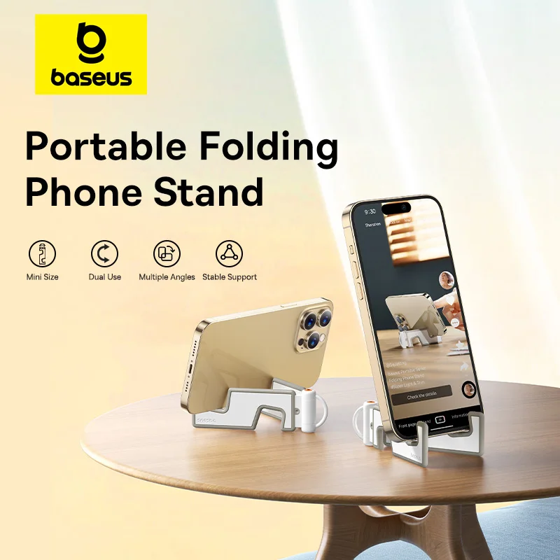 Comprar Baseus soporte de teléfono para iPhone 16 15 14 13 Pro Max Samsung portátil plegable Universal Mini montaje estable ligero soporte delgado