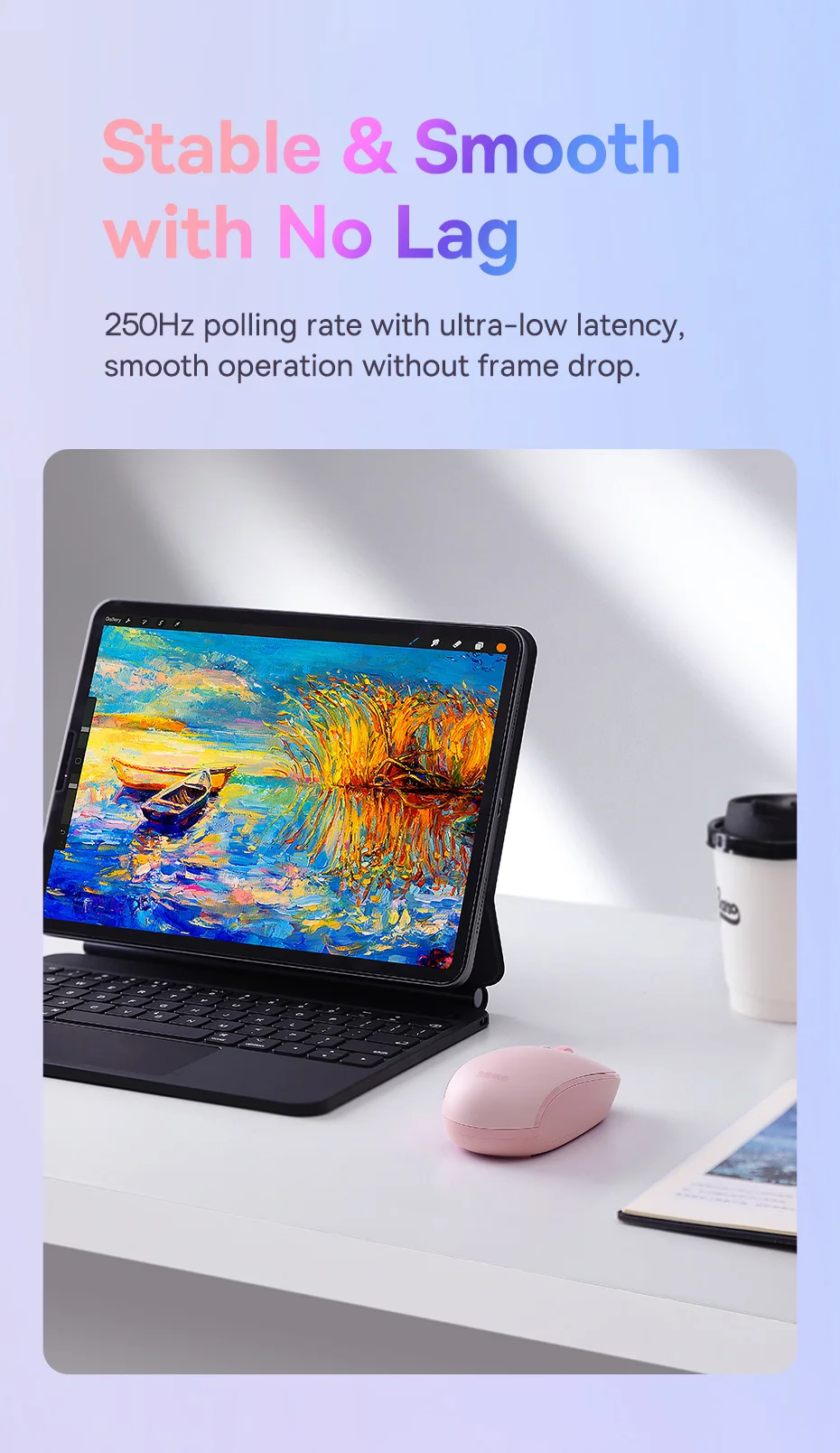 250Hz polling rate with ultra-low latency,smooth operation without frame drop.