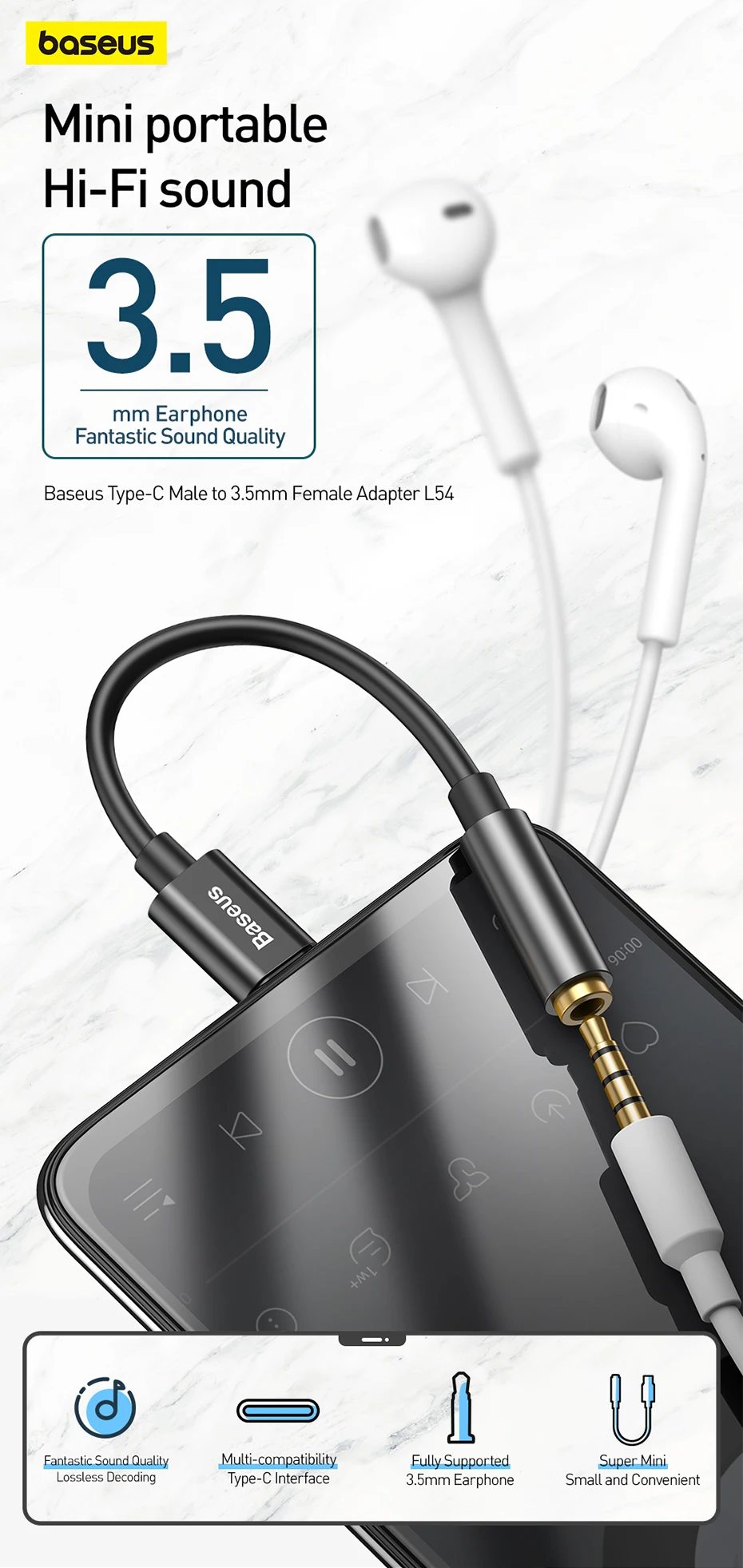 Baseus tipo C macho a 3,5mm hembra adaptador convertidor conector para auriculares forhuawei P30 pro Xiaomi Oppo tipo C adaptador de Audio para auriculares