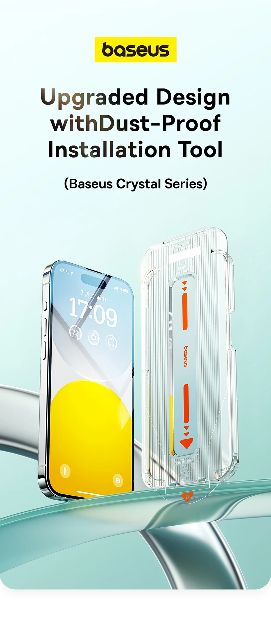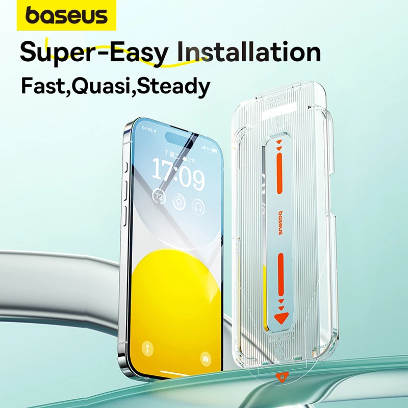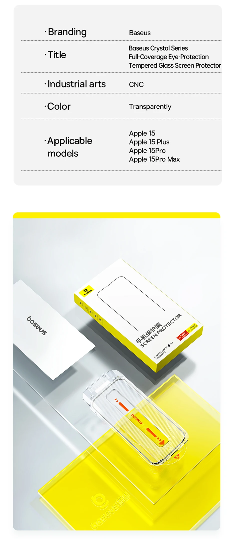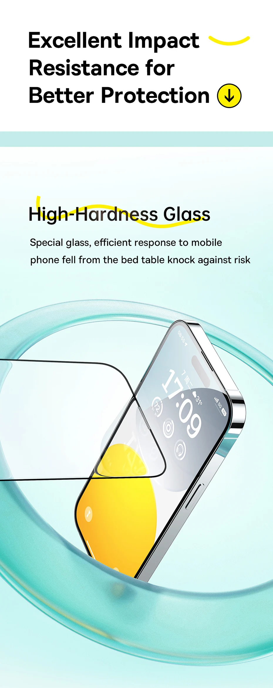 Baseus Ultra HD vidrio templado para iPhone 16 15 Pro Max Plus Protector de pantalla agregar herramienta de instalación a prueba de polvo película protectora