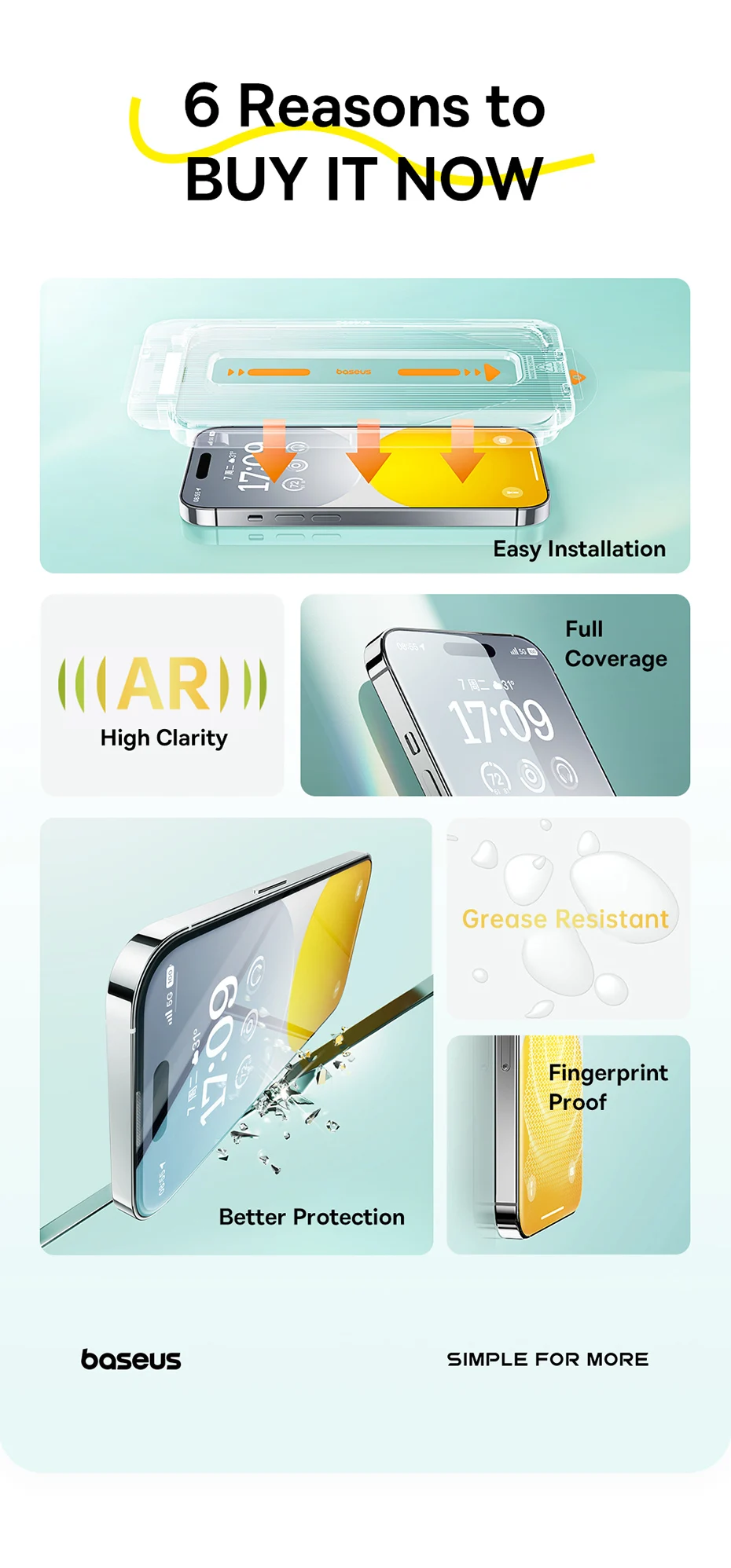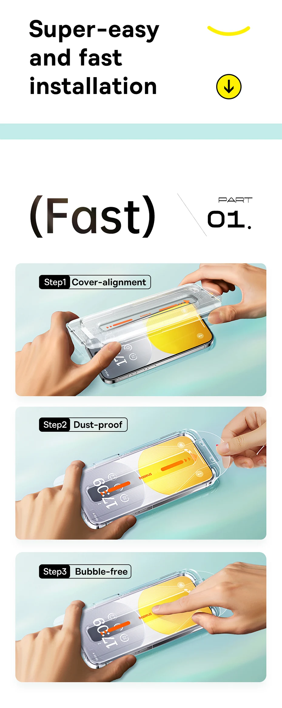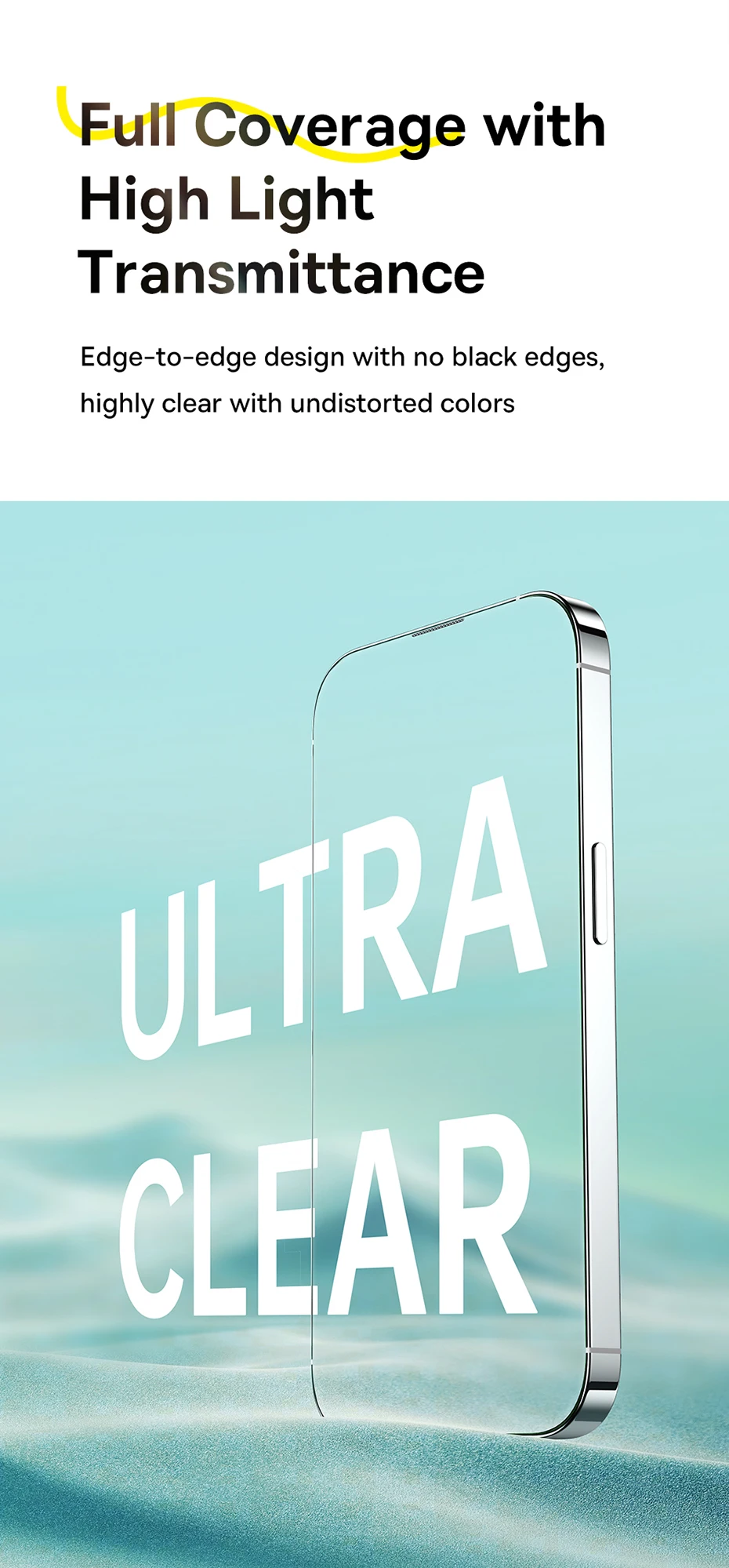 Baseus Ultra HD vidrio templado para iPhone 16 15 Pro Max Plus Protector de pantalla agregar herramienta de instalación a prueba de polvo película protectora