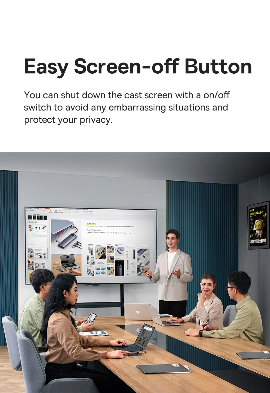 Puede apagar la pantalla fundida con un interruptor de encendido/apagado para evitar situaciones embarazosas.