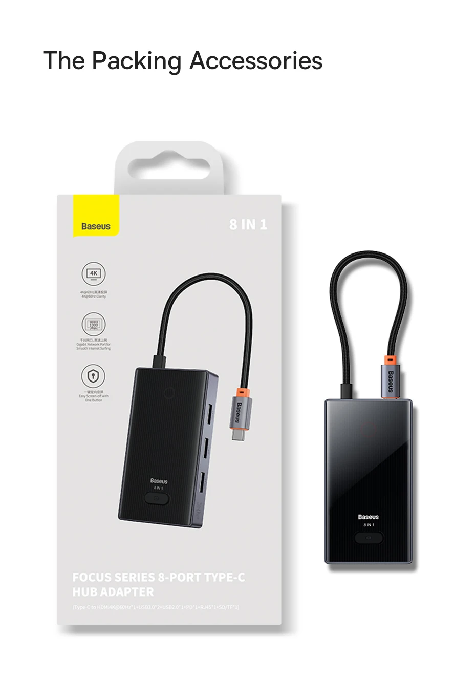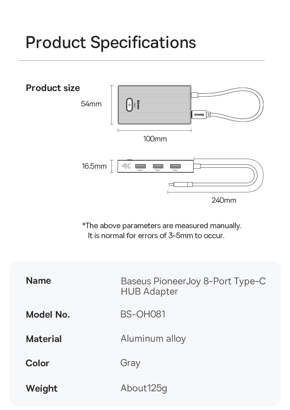 1. Nombre: Baseus PioneerJoy Adaptador HUB de 8 puertos tipo C