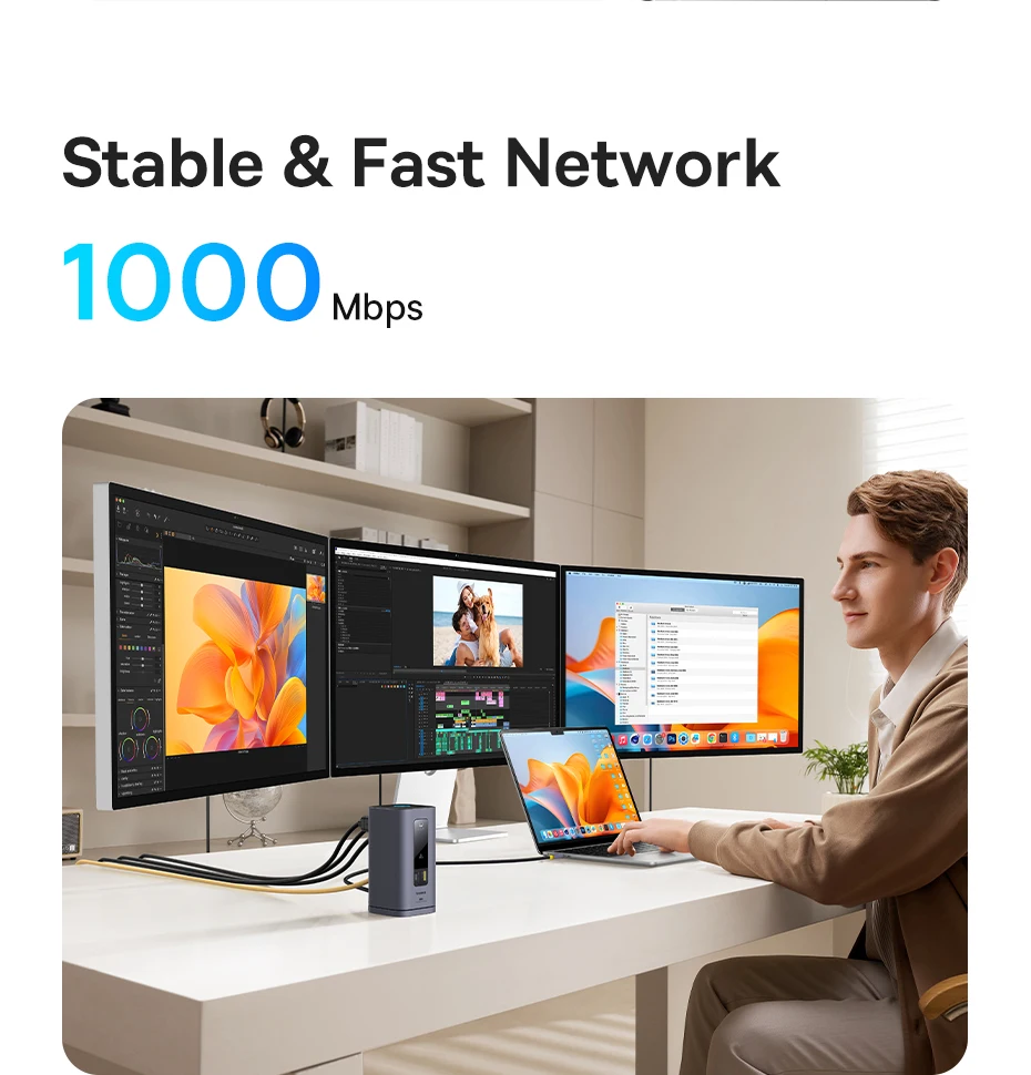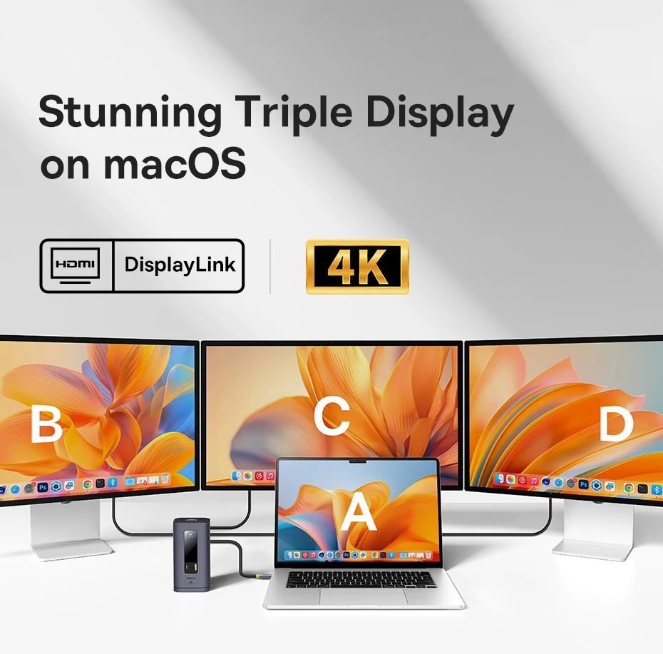 1 【Triple pantalla para macOS】Admite pantalla ultra clara del monitor principal A a B+C+D 4K.