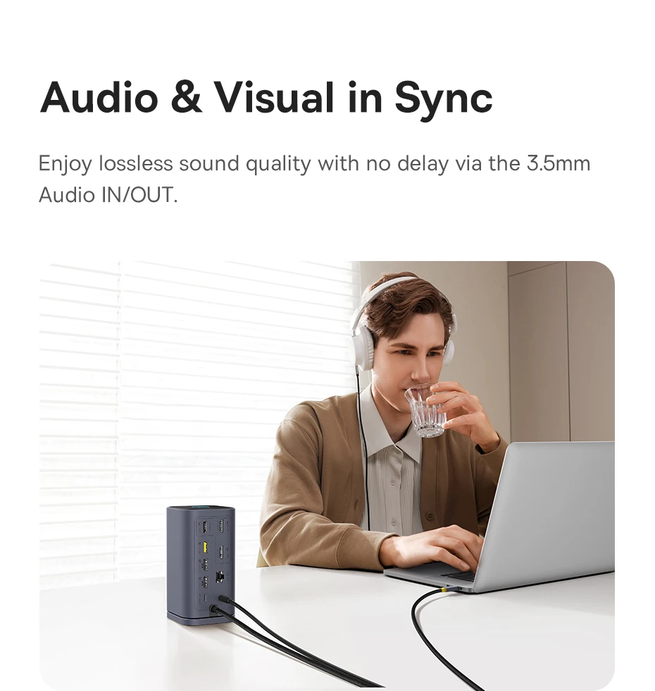 Disfrute de una calidad de sonido sin pérdidas y sin demoras a través del audio IN/OUT de 3,5 mm.