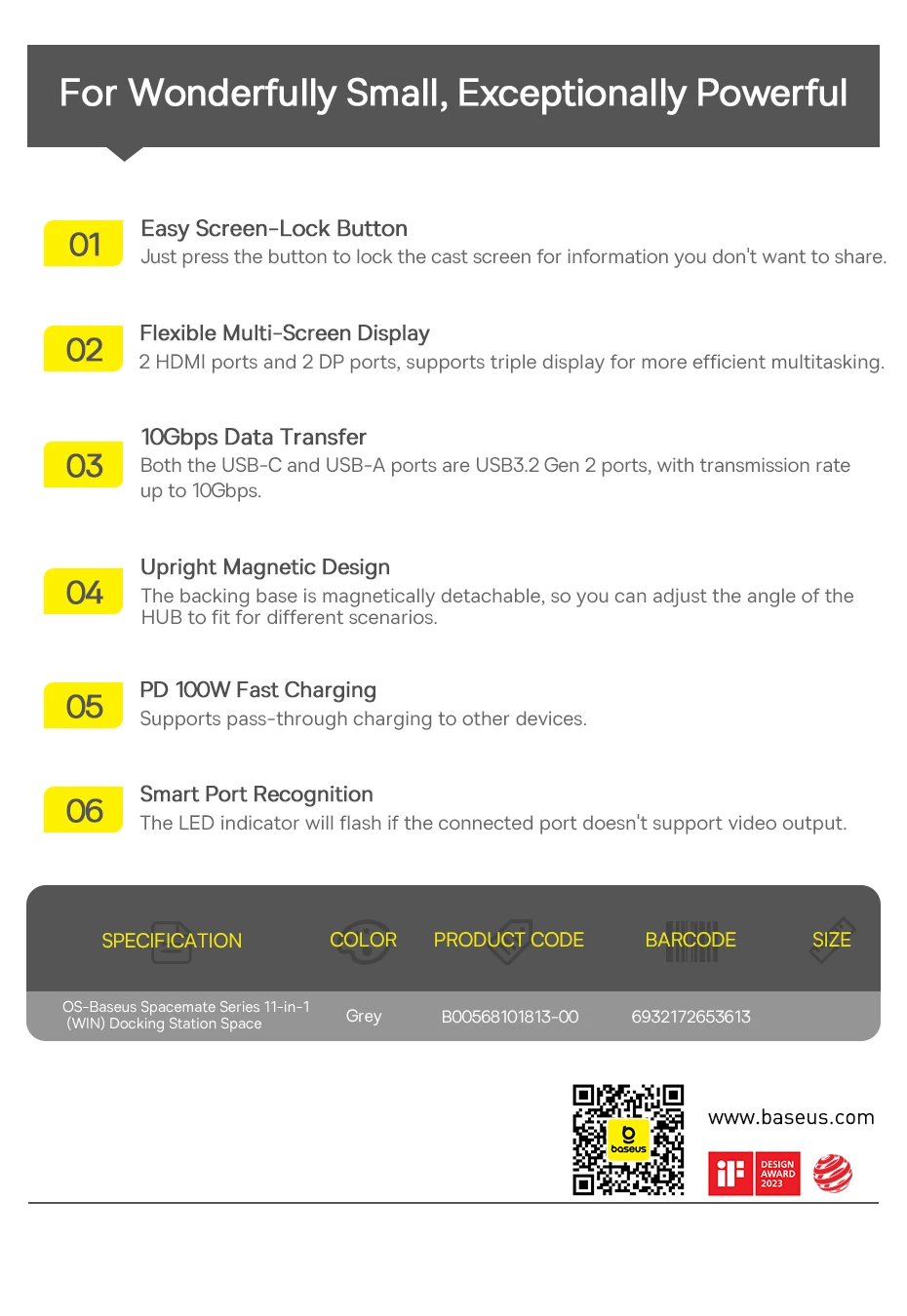 Nombre: Espacio de estación de acoplamiento Baseus Spacemate serie 11 en 1 (WIN)