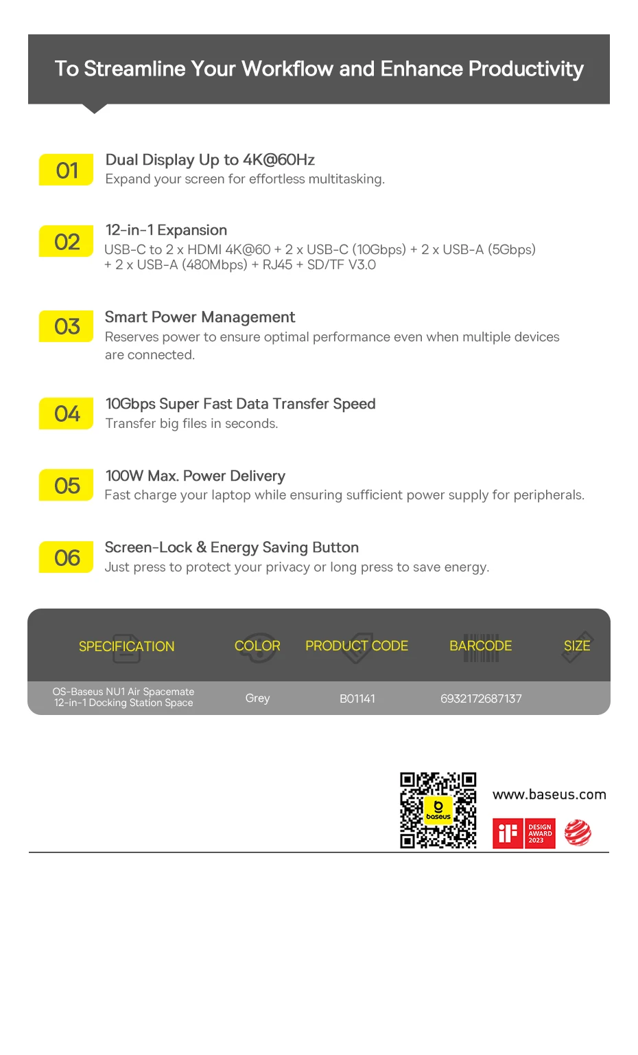 Nombre: Estación de acoplamiento 12 en 1 Baseus Nomos NU1 Air Spacemate