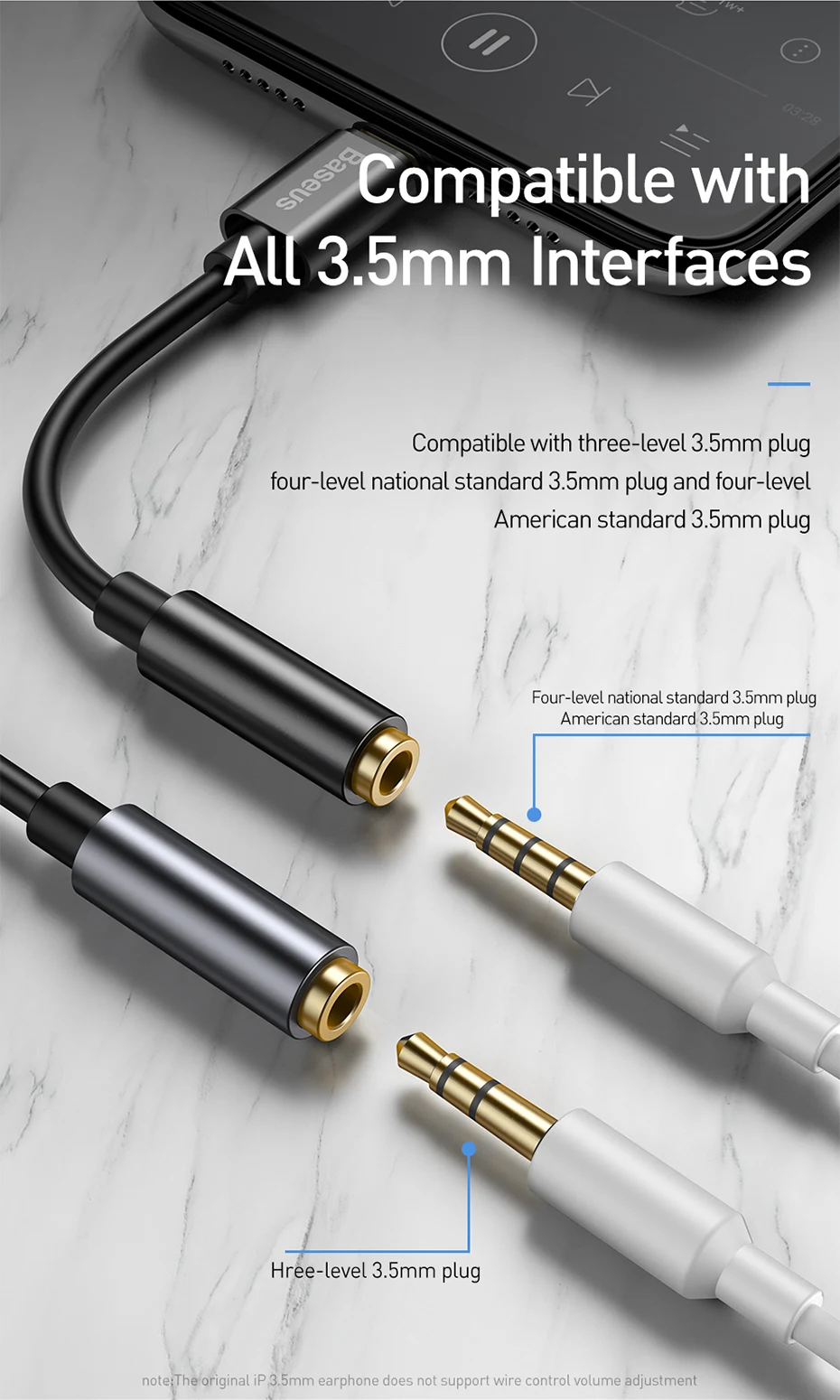Baseus USB tipo C a conector para auriculares de 3,5mm adaptador OTG USBC tipo C Cable auxiliar de Audio para auriculares de 3,5mm para Xiaomi Mi 10 9 8 Pro Redmi