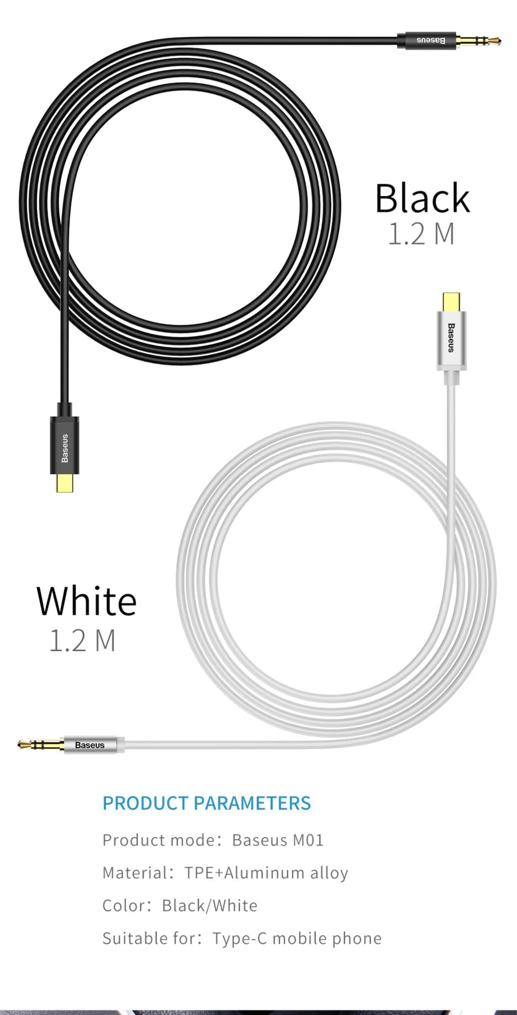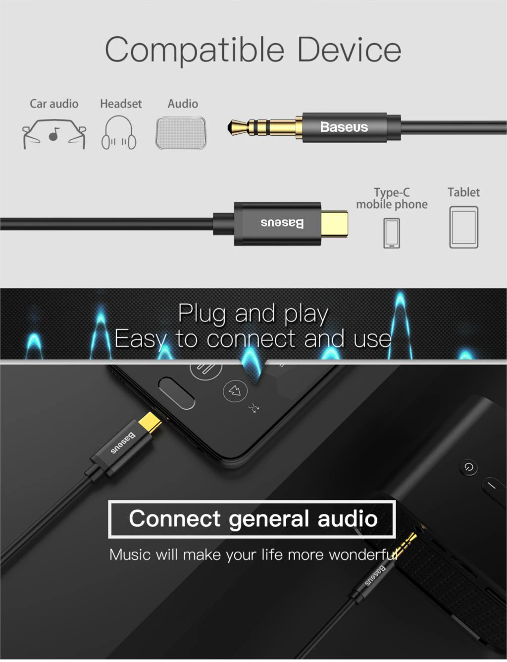 Comprar Baseus USB tipo C Aux Cable de Audio USBC a conector hembra de 3,5mm adaptador para auriculares Cable de altavoz para Xiaomi Huawei Samsung