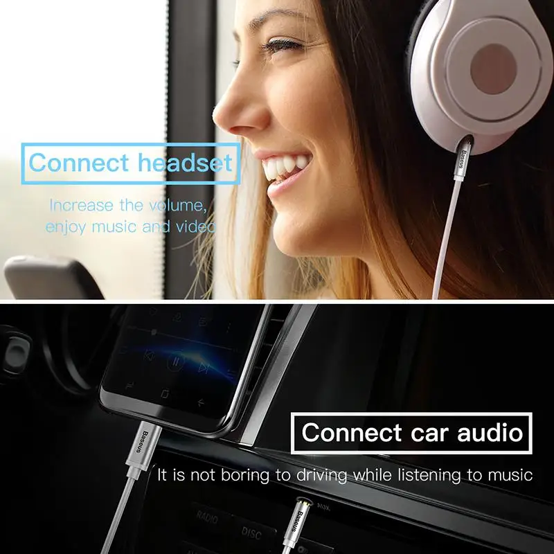 Comprar Baseus USB tipo C Aux Cable de Audio USBC a conector hembra de 3,5mm adaptador para auriculares Cable de altavoz para Xiaomi Huawei Samsung