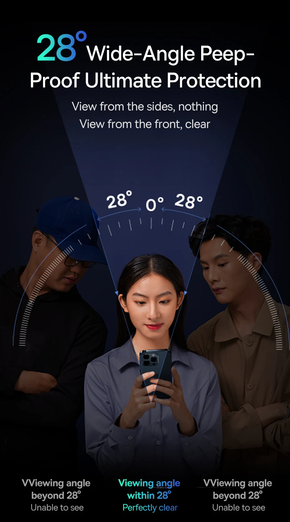 Todos los nuevos de tercera generación de 28 ° ángulo perfecto a prueba de mirones HD ultra claridad con alta transparencia.