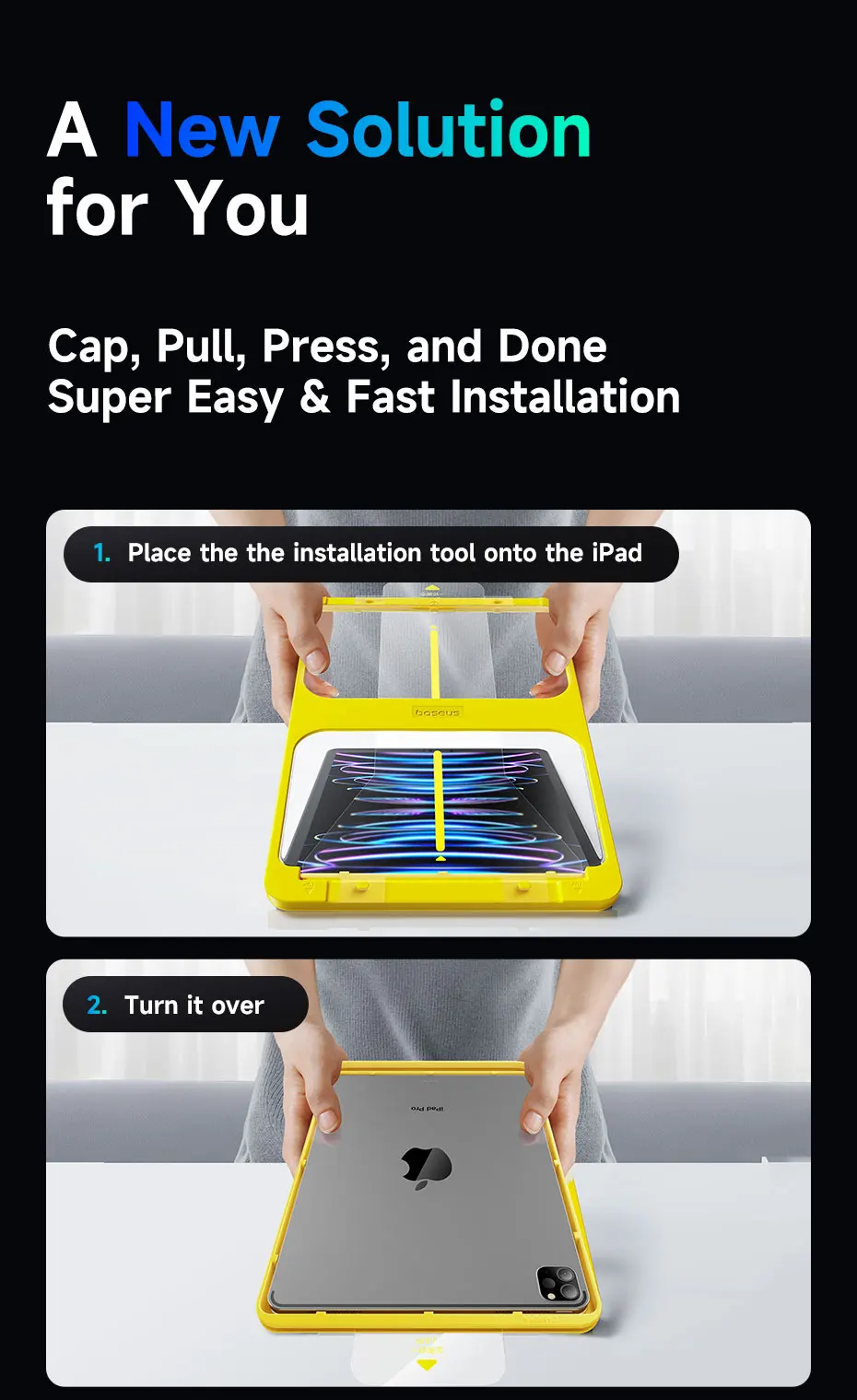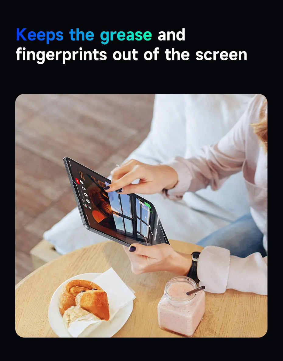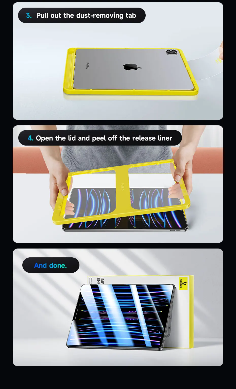 1. To ensure the bubble-free, please kindly clean the screen of your pad before filming.
