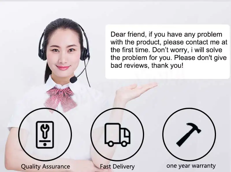 NOTA:Si el producto se daña durante el transporte, o no recibe el producto a tiempo, o no está satisfecho con la calidad del producto, etc., póngase en contacto con nosotros antes de abrir una disputa o dejar comentarios negativos. Haremos todo lo posible para proporcionarle una buena solución.