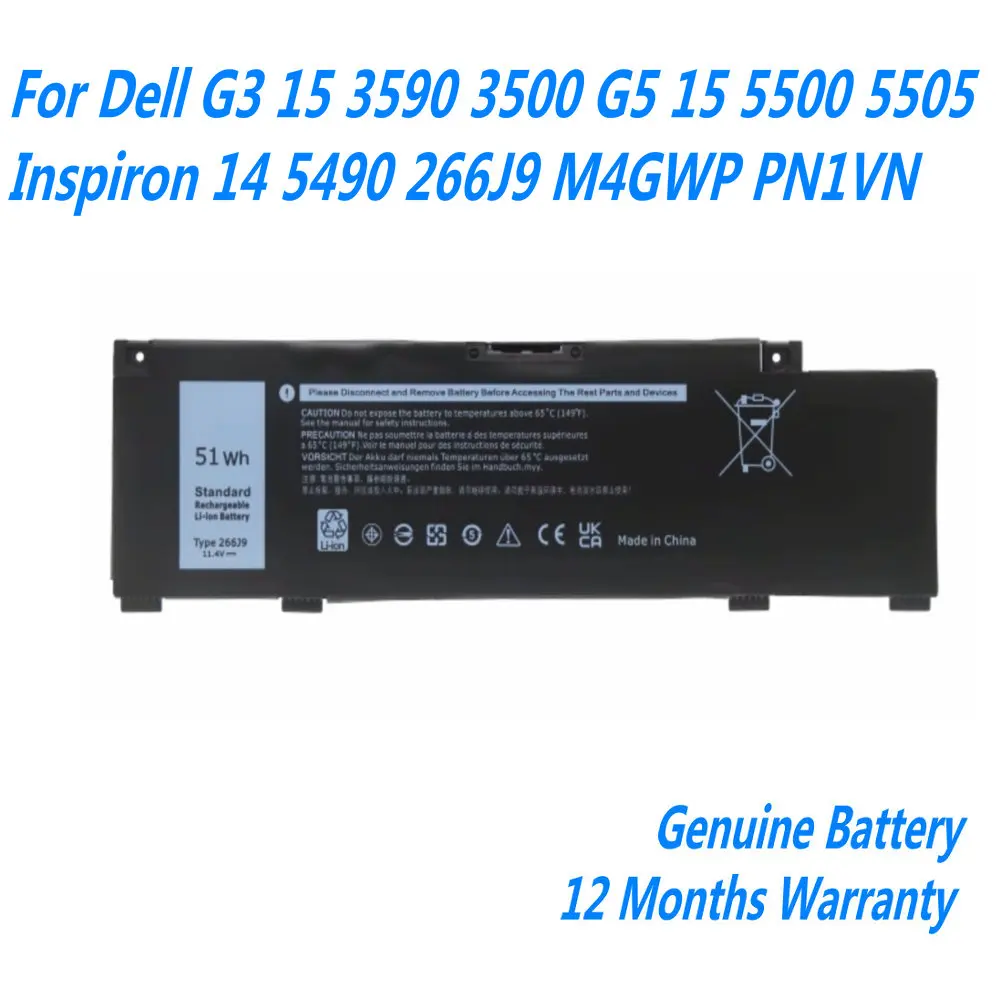 Comprar Batería 266J9 para ordenador portátil, accesorio para Dell G3 15 3590 3500 G5 15 5500 5505 Inspiron 14 5490 M4GWP PN1VN 11,4 V 51WH, novedad