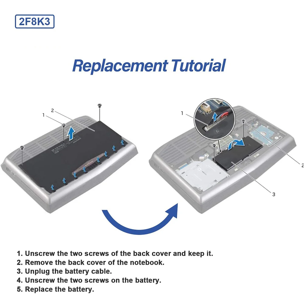 Comprar Batería 2F8K3 para portátil Dell Alienware 17 R1 17X M17X-R5 18 R1 18X M18X-R3 Series P18E P18E001 P19E P19E001 02F8K3 G33TT