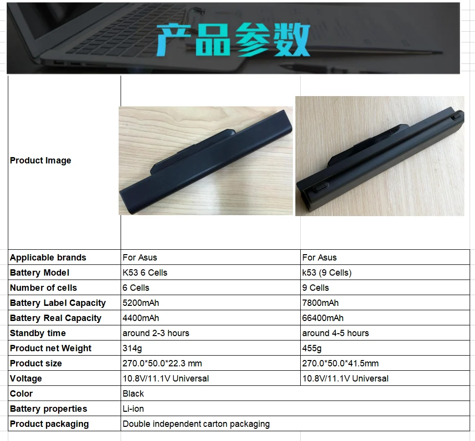 Comprar Batería de 6600mAh para ordenador portátil, para ASUS X54C, X54H, X54HR, X54HY, X54L, X54LY, A41-K53, K53E, K53F, K53J, K53S, K53SD, K53SJ, K53SV