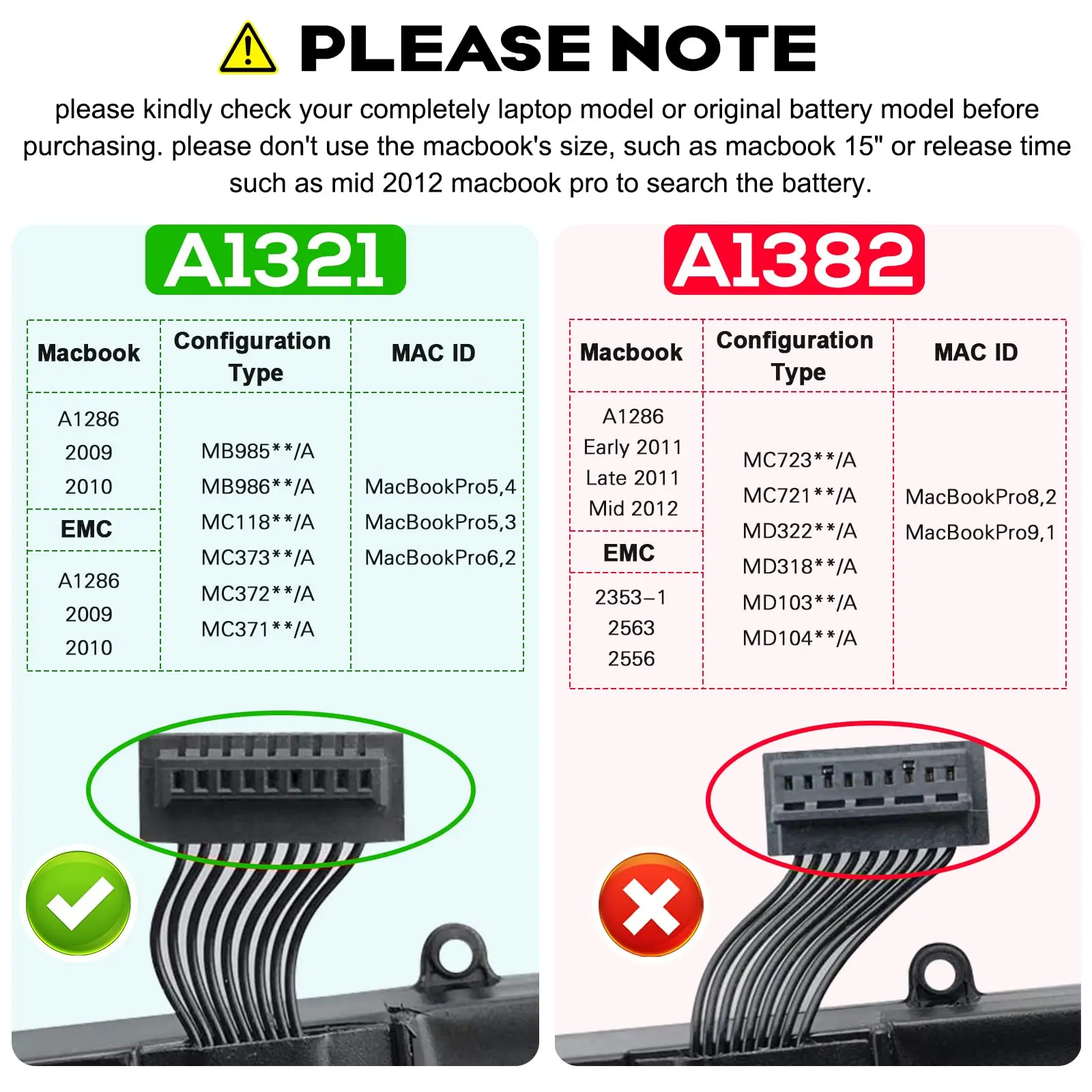 Comprar Batería A1321 A1286 para portátil MacBook Pro, 15 pulgadas, mediados de 2009, mediados de 2010, reemplazo para MacBook Pro, A1321, A1286, MC371LL