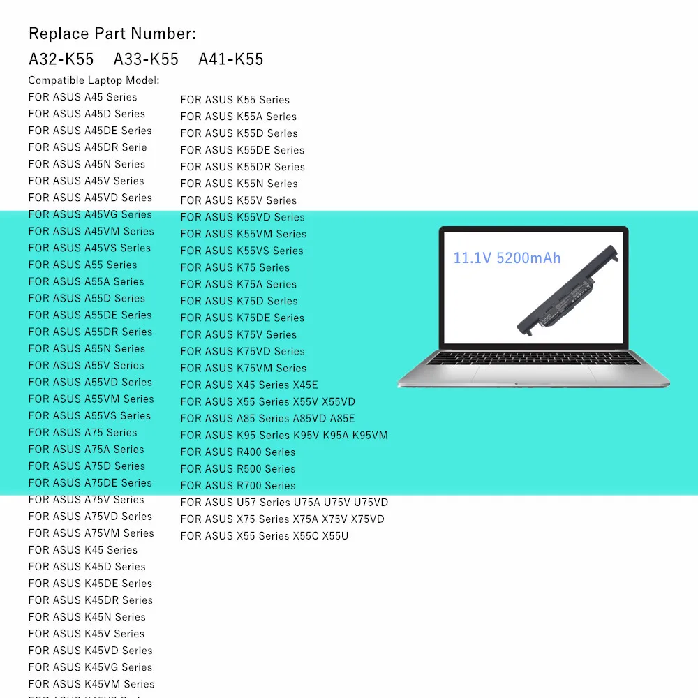Comprar Batería de A32-K55 para portátil Asus A41-K55 K55A K55D K55N K55V K75 K75A K75D K75V R400 R400D R400N R400V R500 R500A R500D R500V